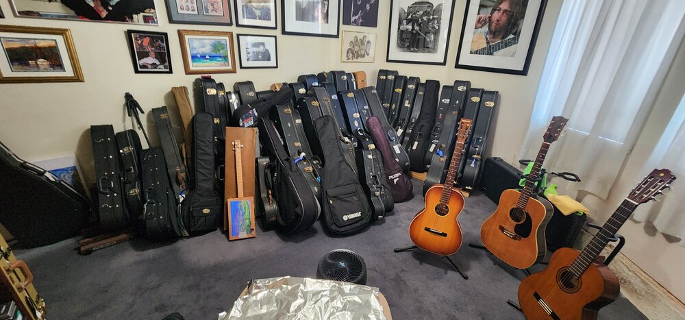 11. In Aug or Sept I will begin helping my friend liquidate his guitar collection. He's decided its time. There are over 50 guitars in these cases. Ive only been inside a few of them but if that's any indication, we are in for a treat.