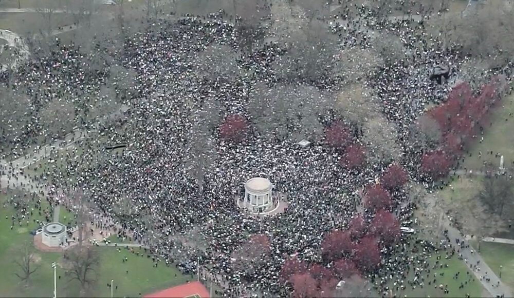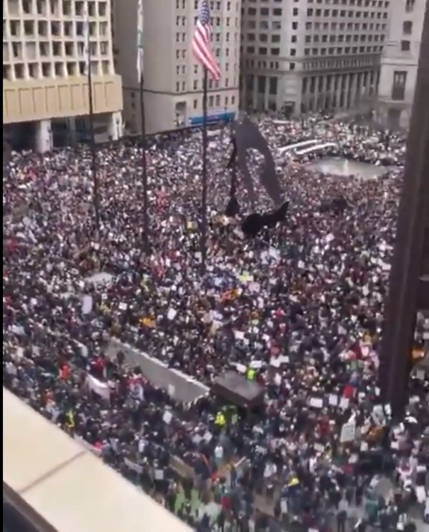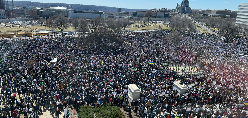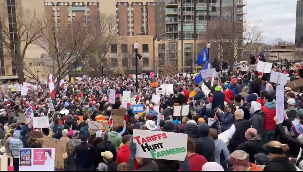 6. Protests are occurring all across our country, in cities big and small, at this very moment. Here’s an image of the Hand’s Off protest at Boston’s Commons. In Chicago: Madison, Wisconsin St Paul