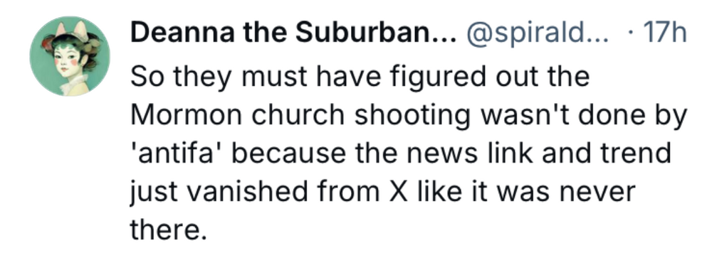 12. Shooter pictured wearing a Make Liberals Cry shirt. I don’t think of Mormons as liberal, but I guess I have no idea how to make America great.