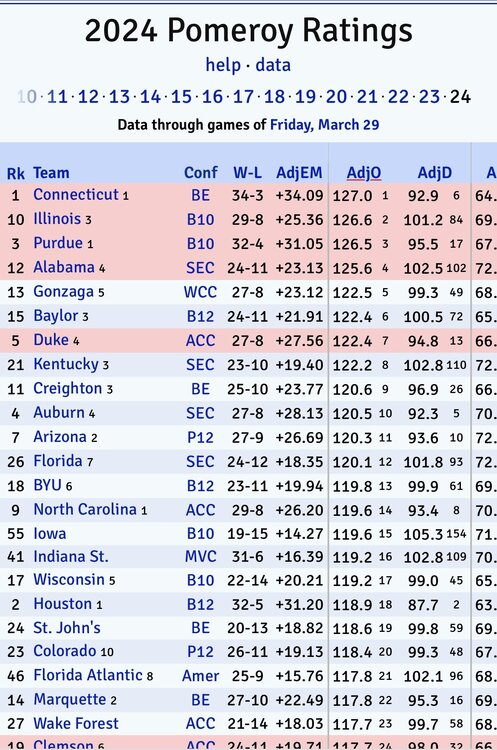 10. looks like elite offense is the name of the game this year: by AdjO: AdjD: