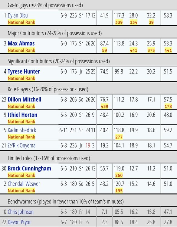 disu > gone abmas > gone hunter > yikes. 50/50 to return mitchell > severely limited, 50/50 to return horton > gone; also not good shedrick > 10-15 min role player, possibly gone onyema > non factor brock > probably gone, but you never quite know with this guy weaver > first guy on the list iâm excited to have back rodney terry > returning you cannot objectively look at this, add a couple freshman and 3-4 transfers and come to the conclusion that we wonât be worse off next year than we are this year.