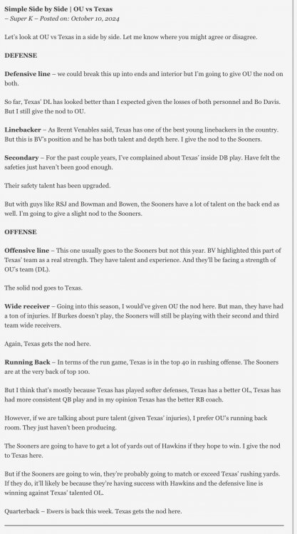 SIAP but Joel Klatt had nothing good to say about OU’s offense. He described the film as the worst he’s watched in a long time – maybe 4 or 5 years, possibly his entire career. “Sooner fans, this will not get fixed with Michael Hawkins as your quarterback.” Segment starts at 17:50.