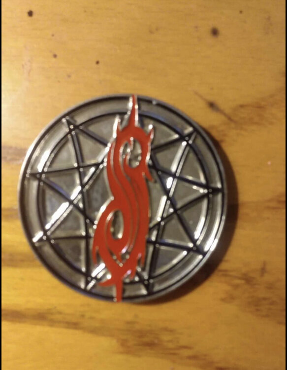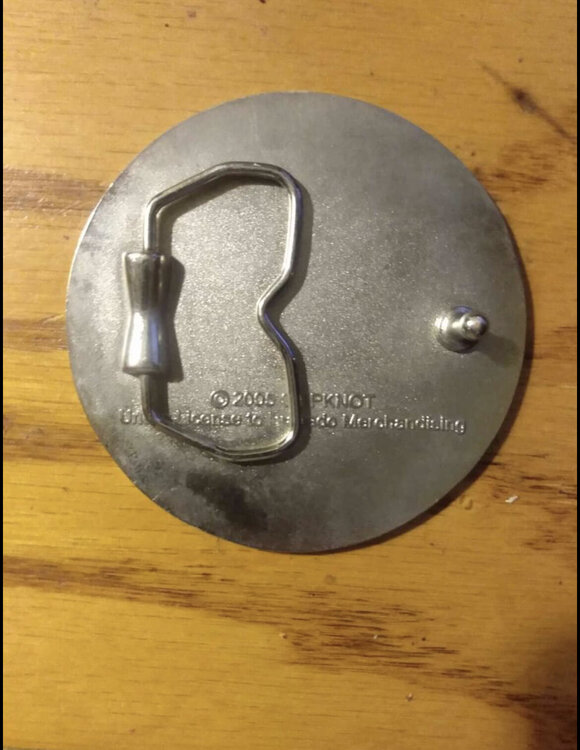 14. This is a Slipknot belt buckle from 2005 so it is a rare antique and a great gift for any fan. $90 FIRM. I think it is pewter. Perfect for your next Slipknot concert where you're required to wear pants. I won this in a rodeo