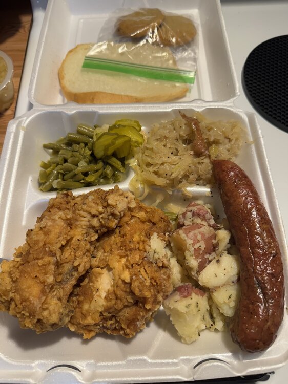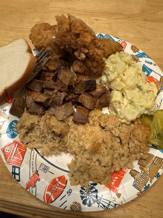 Damn straight, I wish more picnics etc would make dressing as part of the meal, the one at Corn Hill had it, damn it was good, went great with the fried chicken. Nice to have it outside of just Thanksgiving. And roast pork and sauerkraut, hell yes.