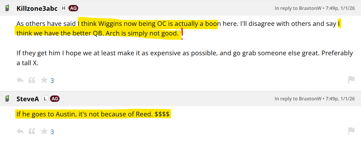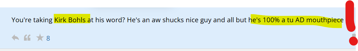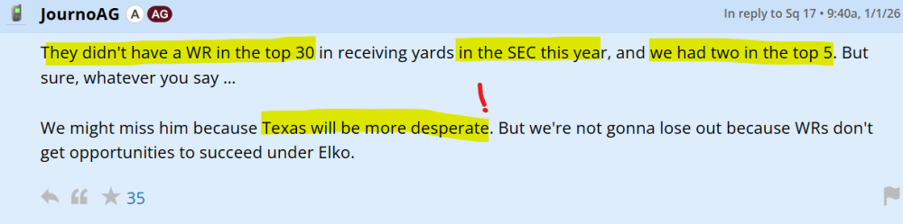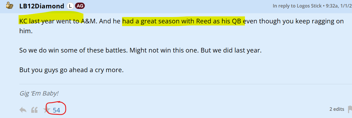 Well boys and girls, in today's episode of Irony-deaf Oafs, we travel to TexAgs. They're the ones who scorn others as arrogant and over-rated. See if you can find the mirror in the picture.- The movie you just watched