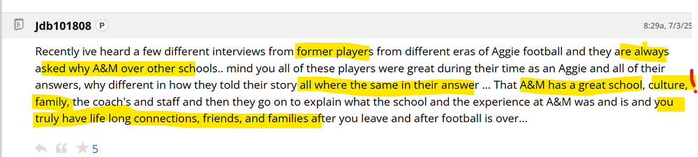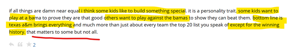 In A&M's most formidable years, even when they dominated the SWC, they could not make themselves elite. Their covid year ranking followed up by the bestest recruiting class ever has all gone to shit. Their performance has never, by a long shot, matched their recruiting rankings as far as I know.
