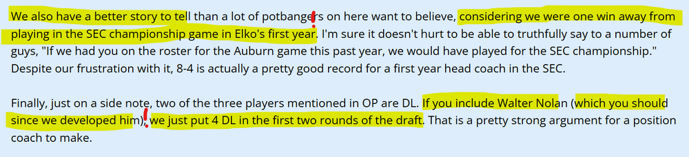 I guess the question I have, and I pose it to @closetojumping and anyone else with insight, is what is the big change has happened at A&M that should persuade me that they're going to rise from Texas 8&4? Elko? Facilities? Sustainable talent acquisition with top coaching staff?