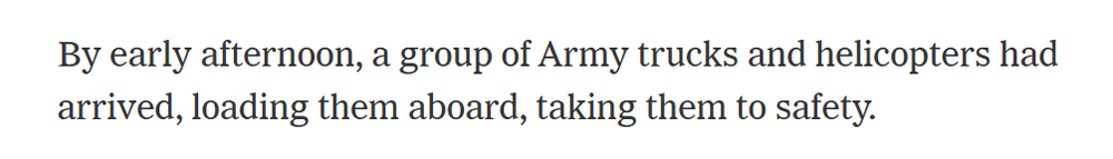@Chopper answered this above. I was going to copy the same thing. Compliments. Nice neighbor. Quiet guy. Kept to himself. I never had any trouble with him. The annual odds are a non-starter. There's a 100% chance that a killing flood will happen there. There was a guy, curiously named Harry Truman, who would not leave Mt. St. Helen because it had never erupted in his lifetime. He ended up under 40 feet of mud. I clicked a link in the NYT article: (I know that I'm covering @Hagbard Celine territory, but maybe this makes it more vivid.) Thank goodness we only get tropical storms once every hundred years. Here's the final paragraph of the above and the next header: Not nearly enough. Teddy bears and a lone couple hugging and weeping? Of course there were. It's the Tragedy Template! School shootings, natural disasters, wherever people get killed and survivors are sad. It's news! I scowled when I wrote this song Sue me if it plays too long Those sisters are free... https://youtu.be/iac-vLq6tnY Deacon Blues, Steely Dan