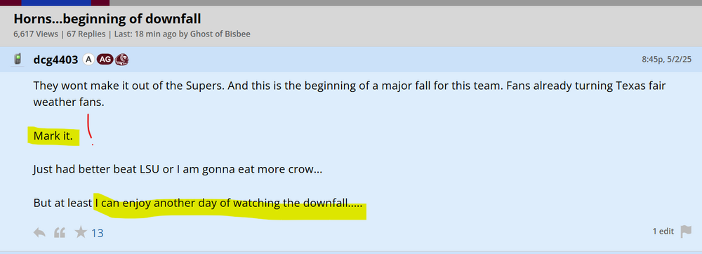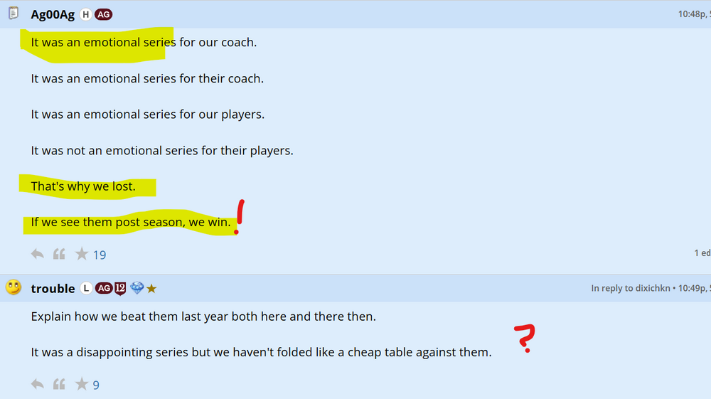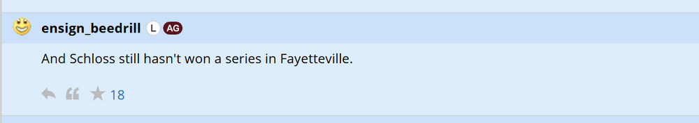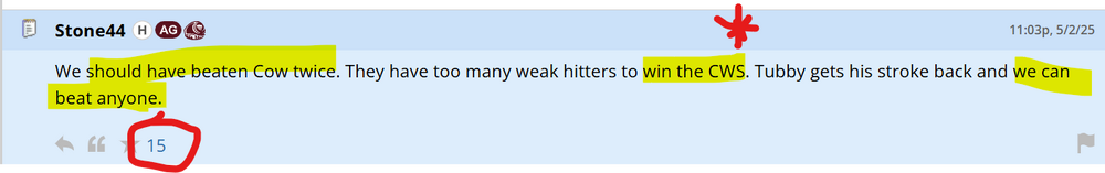 Aggies having a huge weekend sweeping Texas and feeling vindicated: What the fuck does Aggie know... ...about winning a CWS? Such unjustifiable smugness. -