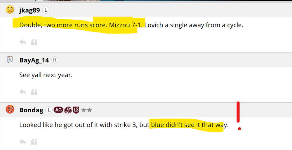 19. Y'all might find this amusing to read in between innings or something. I happed to visit TexAgs during their 6th inning and collected some posts.