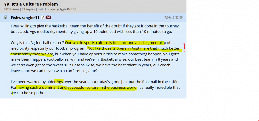 Some cruel fuck raised a thread on TexAgs from last July. Routine Aggie fact generation: And confirmed Aggie Fact. -