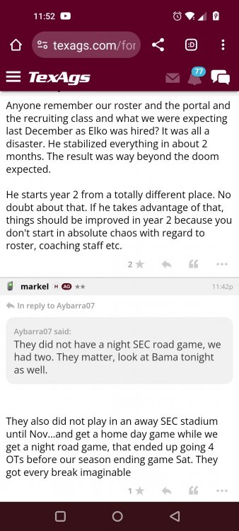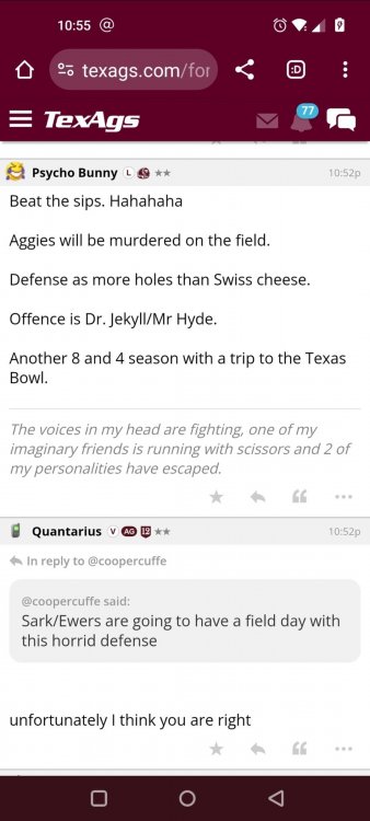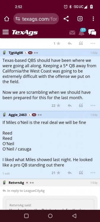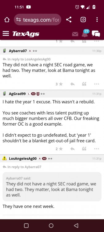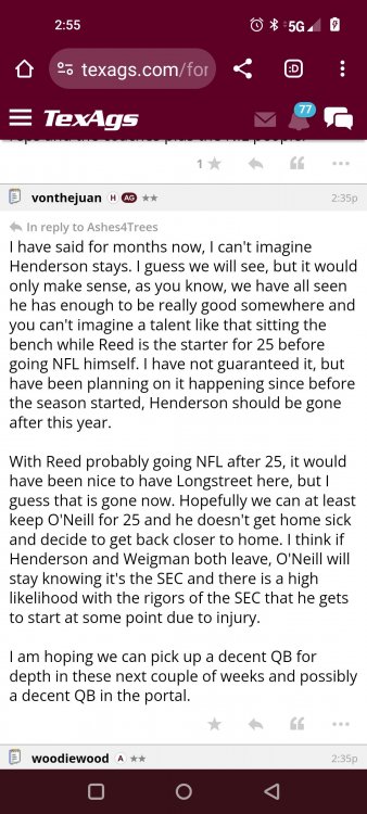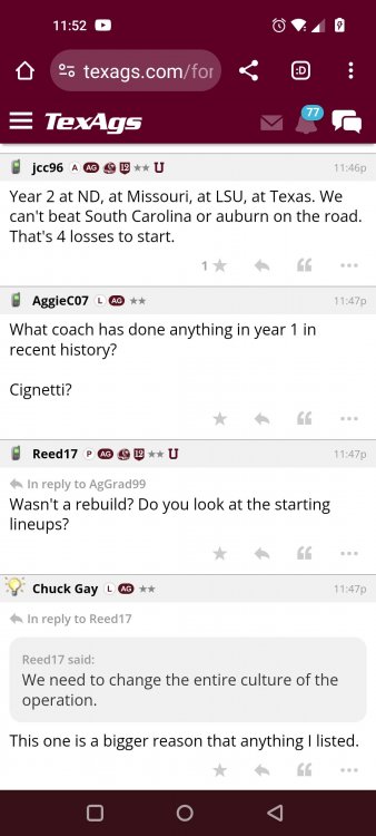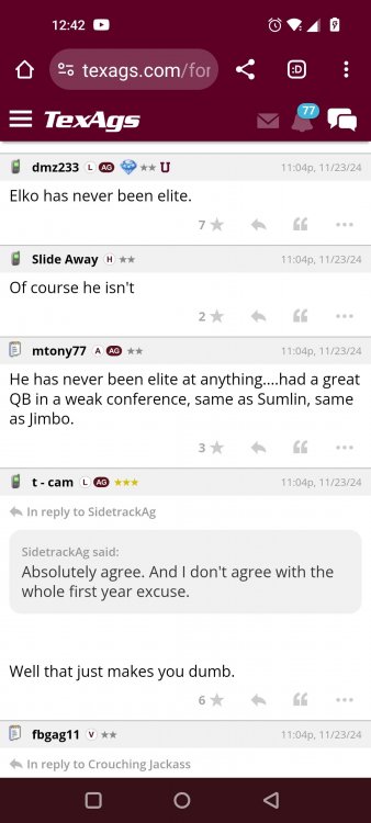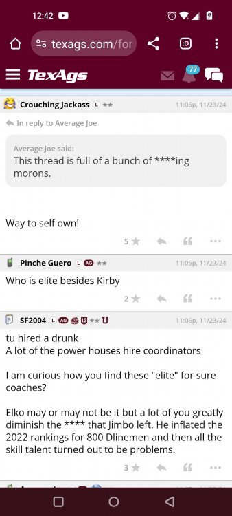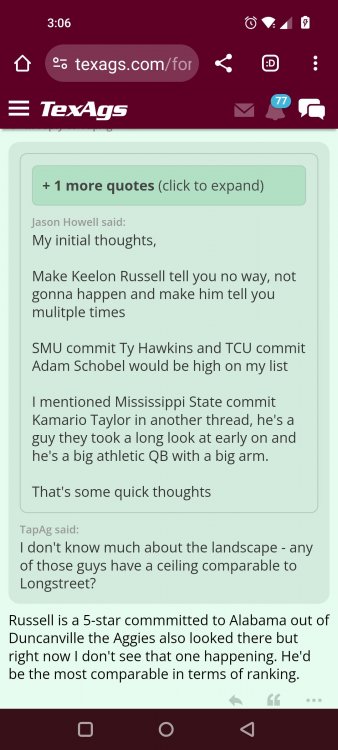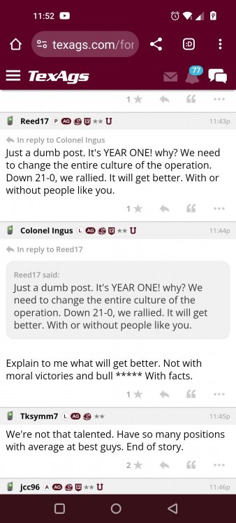 Texas A&M Recruiting 2025: The Land of Melk & No MoneyLonghornfrenzy replied to texifornia's topic in 🤫$9.95🤫 Muff chin Segment 1 (00:00:00 - 03:42:08) Texas A&M is literally on top with a 5-1 record in the SEC. I ran into Chris Valletta. He is one of our most successful former players. He is in town today with Amplify U, which he helped start. He is one of the real success stories. He was also a pretty good offensive lineman back in the day. Segment 2 (03:42:09 - 16:20:09) We know that this is not a team that can play down. They don't have that margin of error, but they have played very well when they play up. I thought Marcel Reed made some beautiful throws. I am still concerned about short yardage without Le'Veon Moss and Chase Bisontis against the really good SEC fronts they're about to face. Do I wish that they would have played better for four quarters? Sure. Do I wish Conner Weigman and Reed didn't make any ill-advised throws in the red zone? Sure. The reality is that they haven't played a football game in two weeks. They played a non-conference game that they knew they were going to win. When you go up 24-0 a minute into the second quarter, there shouldn't be so much negativity after this game. I have seen some bad A&M teams beat up on patsies, and some good A&M teams come out slow and sluggish. The main thing was to shake off some rust and get your starters out early so other people could play. We saw an eye-opening performance by Malick Sylla, and Mike Elko said it, too. It was from him Cashius Howell and Rylan Kennedy. Could they have played better? Absolutely. Whether they beat Auburn by 17 points or lose that game, I don't think what we saw on Saturday has any carryover effect. I don't think anyone is fooling themselves and thinking that they are going to roll through either of these last two games. They're going to have to grind out wins. I agree with one thing about the penalties: You will not have the same margin for error at Jordan-Hare against Auburn or Kyle Field against Texas. Segment 3 (16:20:10 - 17:06:21) You are playing for an SEC Championship. Forget the playoffs right now. You are two games away from playing for an SEC title for the first time. Segment 4 (17:06:22 - 33:26:01) I want smart people to do the CFP rankings. I don't want dumbasses doing my rankings anymore. If you're incapable of critical thinking and analysis without leaning into your computer models and nonsense, then I don't want you on that committee. I think an element of the computer has to factor in things. It's unlike a pro sports playoff element where you have schedules, divisions and leagues. I want common sense on committees. This guy Warde Manuel with an E... It just throws you off. Drop the E, and instead of picking up the E, pick up some common sense when you're answering questions about the playoff. Why is it that every year, they prop someone up at the head of one of these committees who comes off as completely incompetent and inept? That can't answer simple questions anyone closely following college football can answer. If A&M goes 10-3 and loses the title game, that's the only debate. I'm not looking at numbers. Common sense would tell you that they would be in over Tennessee. Does the committee have the balls to drop teams significantly when they lose? Miami should have dropped like a damn rock because of how they looked all year. Miami lost to Georgia Tech. Miami should have dropped more than Georgia dropped. If Texas loses to A&M, they should drop out of the playoff. They might win a national title. They might come into Kyle Field and win. Beat Alabama in the SEC Championship. They might run it. I think they are more flawed than people think. If they don't beat A&M, I will watch the Texas Longhorns and go, "They definitely look like one of the twelve best teams in the country." But if we’re talking about resume, and you only play two top-25 teams in the country, and you lose to both of them... Versus what other teams in the discussion have accomplished, how can you honestly say they deserve to be in? That is a big if. Texas needs to beat A&M. I do not think that Texas losing to A&M knocks them out of the playoffs. I'm not saying it will. However, if you look into the SEC and start comparing resumes and think that the most you'll get in the playoff is four, how will you put them in over A&M, Georgia, Alabama or Ole Miss? Is Texas a top 12 team? Yes. I'm just saying that these committees have them at three. These teams that haven't beaten anyone, if you take a second loss and you don't have that win, then you should go. We let you in the club, and we were skeptical about the way you dressed, or if your ID was legit or not, and damn it, you proved that we made a mistake. Tennessee has a quality win. Ole Miss has a quality win or two. Alabama has a quality win, and Georgia has a quality win. I wouldn't say A&M has one yet because of how LSU is panning out, but if they beat Texas, they'll have a quality win. There would be only one team in the discussion that doesn't have a quality win. Who is SMU's quality win? I know it's a great story, but is it Disney or college football? A&M can get that quality win in two weeks, but none of it matters unless they take care of business against Auburn. Texas is a 20-point favorite against Kentucky at home. They're not losing that. A&M is a one-point favorite at Auburn at night. This is an Auburn team that beat the brakes off of Kentucky. This is a dangerous game, and we know it. Segment 5 (33:26:02 - 37:56:02) Losing Husan Longstreet is a big loss. You wanted a quarterback in this class and no longer have that two weeks before signing day. That is not a failure on A&M's side. They went all in on a quarterback from California who grew up liking USC. I agree that is a risk, but everything went how it should have. The Collin Klein relationship with Longstreet is incredible. His brother, Kevin Longstreet Jr., is here. A&M is winning big games. 