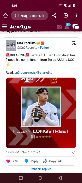 Texas A&M Recruiting 2025: The Land of Melk & No MoneyLonghornfrenzy replied to texifornia's topic in 🤫$9.95🤫