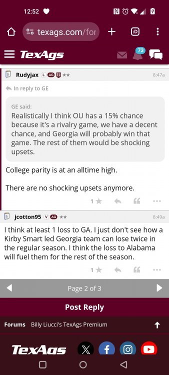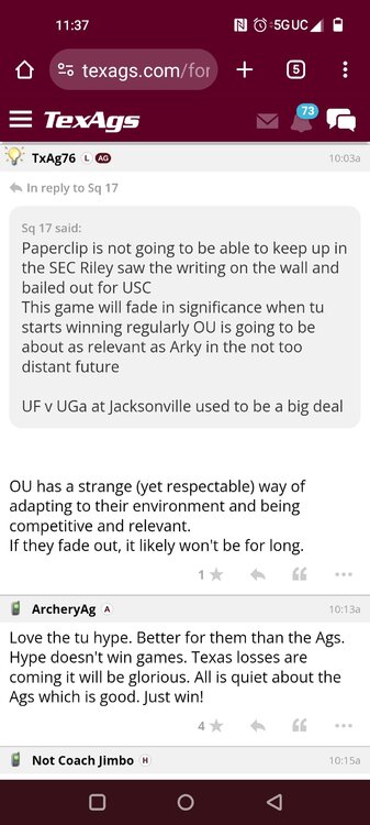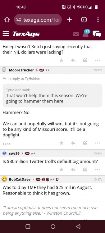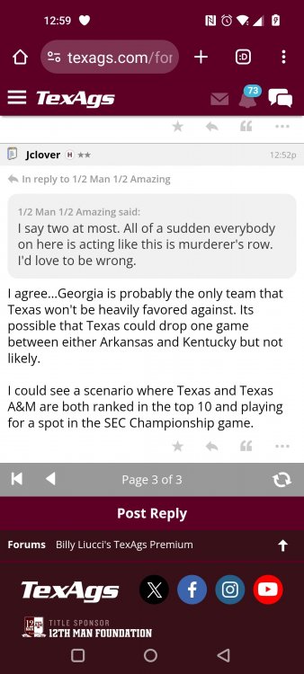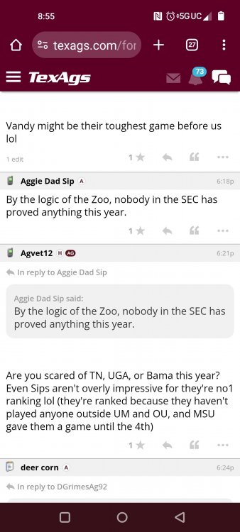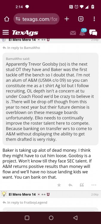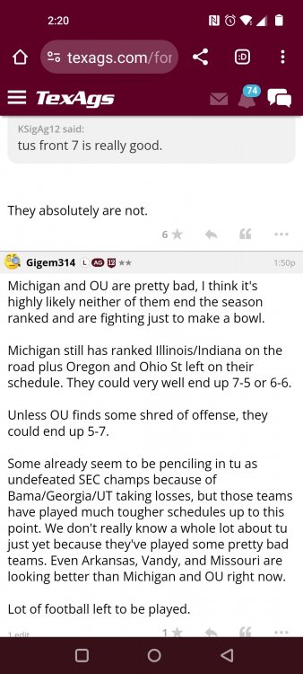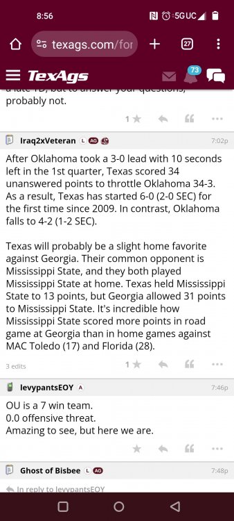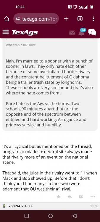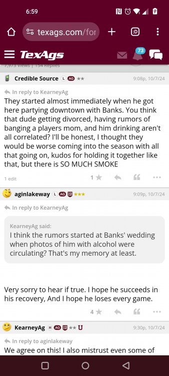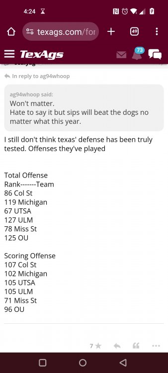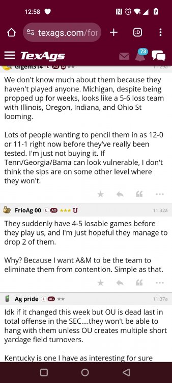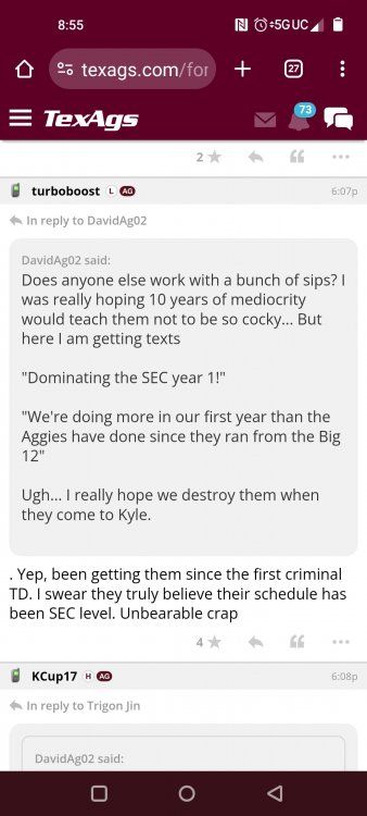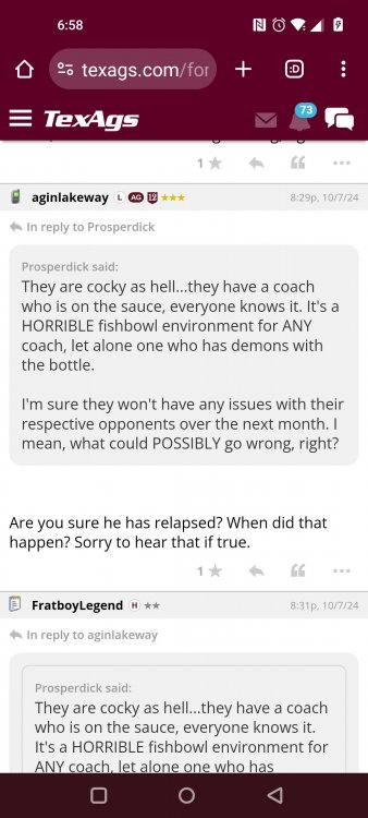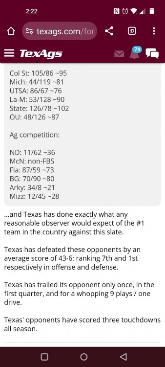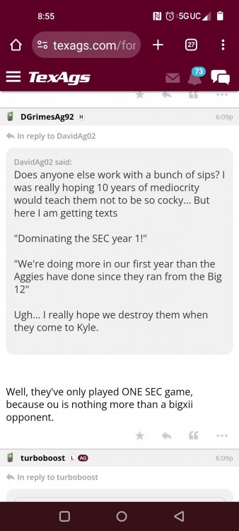 Surprised it has taken him this long to produce the sunshine article By Billy Liucci October 7, 2024 Texas A&M opened the season with a golden opportunity to make a statement in game one of the Mike Elko era. When Notre Dame walked off of Kyle Field the winner after four tough quarters, a large group of frustrated Aggie fans — and most of college football media — immediately wrote off the Aggies in 2024. After just a single game, the general consensus was that A&M would scrap through a “rebuilding” season while Elko established his culture and eventually flipped the roster. It took Elko and the Aggies all of five weeks to flip what was a ridiculously premature narrative (even at the time) on its head. Following the 23-13 loss to the Fighting Irish, it was evident that the Maroon & White needed to make significant and immediate strides on both sides of the ball. If not, forget about down the road showdowns later this fall, A&M getting out of September sans another blemish would have been unlikely. A road trip to “The Swamp” to take on a desperate Florida team followed by a senior-laden MAC contender and then the annual circus vs. Arkansas in Arlington. Mix in the fact that Conner Weigman suffered an injury in the season-opening loss that eventually sidelined him for three games, and it's almost understandable that many without any inside knowledge of Elko, his staff or team would write off the Aggies' chances and shift their focus elsewhere. However, a funny thing happened on the way from Notre Dame to a bye week that rests squarely at the season's midway point. The Aggies quietly came together and got better. Marcel Reed played like a seasoned veteran during his first career start in Gainesville, and a team determined to end a two-plus year road losing streak managed to put Florida and the 90,000 Gator fans in attendance away early. A week later, the Aggies appeared to lose some focus but didn't flinch when staring down what would have been a season-derailing upset, winning the fourth quarter and disposing of Bowling Green. At Jerry World, the Aggies again rose up when the game was on the line, thanks to Le'Veon Moss running hog wild and Jay Bateman's defense smothering Bobby Petrino's Arkansas offense down the stretch. September lessons were learned, and as is always the deciding factor in year one of a head coach's tenure, the A&M players remained engaged and were receptive to Elko's messaging. When the Aggies went on the road and raced out to a 20-0 halftime lead at “The Swamp,” it became very clear that the culture was quickly changing in College Station. The next step, of course, was winning the fourth quarter and closing out tough games. That happened in back-to-back weeks — and against two very different foes — against Bowling Green and Arkansas. The September wins were a great indicator of things like improvement and buy-in. The Aggies began making more big plays than allowing them, the run game showed marked week-to-week improvement, they began protecting the football and began regularly producing momentum- and game-changing plays on defense. The result? College football's only ranked matchup of the weekend, with 4-0 and No. 9 Missouri taking on No. 25 and 4-1 Texas A&M in front of the 12th Man. It goes without saying that Elko and the Aggies took full advantage of the chance to force their way back into the SEC and national conversation, taking Missouri to the woodshed and handing the Tigers the kind of beating that led to A&M making an eye-catching 10-spot rise in the polls. An earlier-than-expected shot at redemption for the Aggies, as A&M got a second shot at a top-25 showdown against a top-10 opponent at home before mid-season. It goes without saying that Elko and the Aggies took full advantage of the chance to force their way back into the SEC and national conversation, taking Missouri to the woodshed and handing the Tigers the kind of beating that led to A&M making an eye-catching 10-spot rise in the polls. The newly-ranked No. 15 Aggies drove 60 yards on eight plays into the end zone on their first possession and had Mizzou in a seemingly insurmountable 24-0 hole at halftime. When Moss took a handoff on the first play of the third quarter, saw a gaping hole and sprinted 75 yards to paydirt, the Ags led a top-10 opponent 31-0, and it sure looked like Eli Drinkwitz's Tigers couldn't get on the plane to Columbia fast enough. For four quarters during a 41-10 trouncing of the Tigers, the Aggies played like a team capable of beating anyone on the remaining schedule. Weigman (yes, the lede has been buried here, but we'll get to #15 in a moment) was absolutely dealing, and the passing game clicked like we haven't seen all season, with his targets catching everything thrown their way. With a physical offensive line paving the way, the running game once again carved up an SEC defense as Moss rumbled his way to 138 yards and three touchdowns on just 12 carries. Defensively, the Aggies held a Mizzou offense loaded with skilled playmakers to a single touchdown and barely 250 total yards. A five-game winning streak, the Aggies' first 3-0 SEC record since 2016 (their second since joining the league) and a top-15 ranking had the national college football voices singing a very different tune about Texas A&M football by Saturday afternoon, as top-10 teams around the country continued dropping like flies. And while field stormings and goalpost takedowns in Nashville and Fayetteville ultimately stole the weekend headlines (deservedly so), the Aggies beating the hell out of Missouri was the top-10 “upset” that didn't feel like one. The Aggies looked like a top-10 outfit on Saturday, while Missouri looked like a fringe top-25 squad. Seemingly out of nowhere, A&M looked elite in all three phases of the game. The ease with which the Ags disposed of a Missouri team that came in 15-2 since the start of last season — combined with what took place around the SEC and colleg