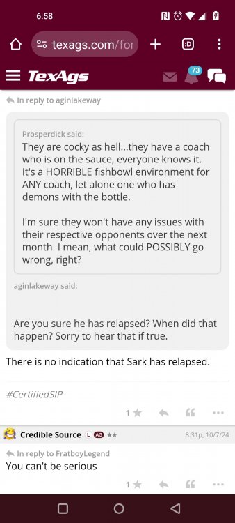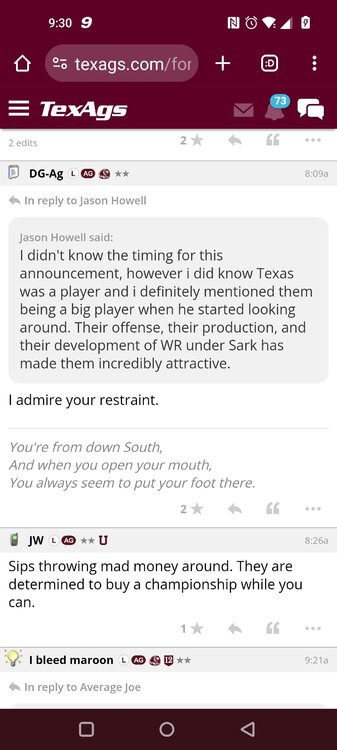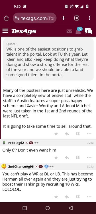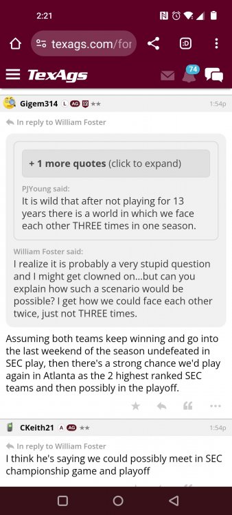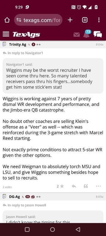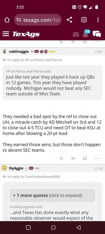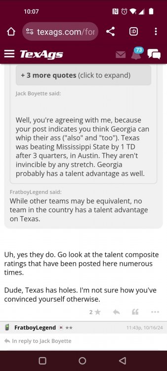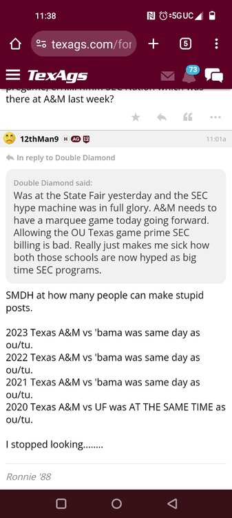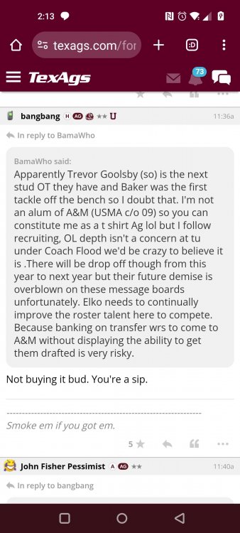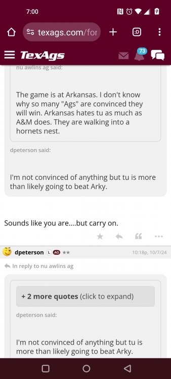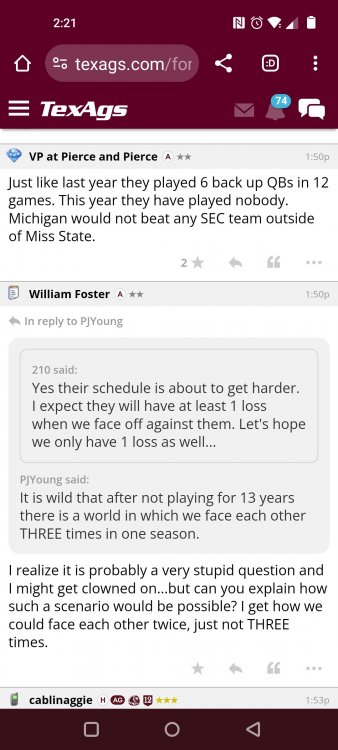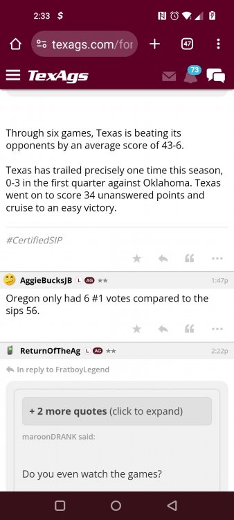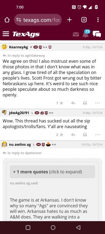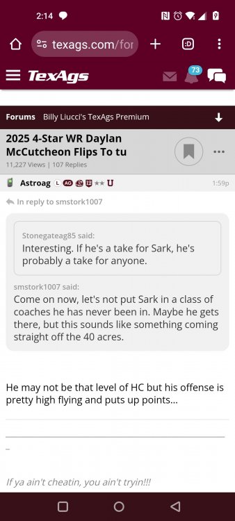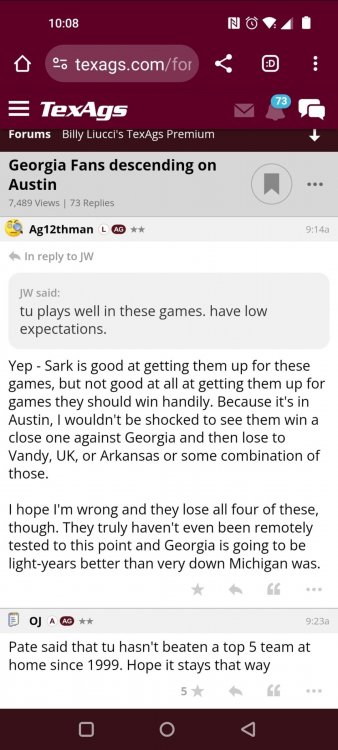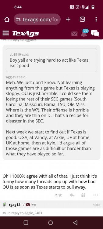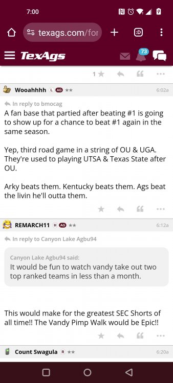 Surprised it has taken him this long to produce the sunshine article By Billy Liucci October 7, 2024 Texas A&M opened the season with a golden opportunity to make a statement in game one of the Mike Elko era. When Notre Dame walked off of Kyle Field the winner after four tough quarters, a large group of frustrated Aggie fans — and most of college football media — immediately wrote off the Aggies in 2024. After just a single game, the general consensus was that A&M would scrap through a “rebuilding” season while Elko established his culture and eventually flipped the roster. It took Elko and the Aggies all of five weeks to flip what was a ridiculously premature narrative (even at the time) on its head. Following the 23-13 loss to the Fighting Irish, it was evident that the Maroon & White needed to make significant and immediate strides on both sides of the ball. If not, forget about down the road showdowns later this fall, A&M getting out of September sans another blemish would have been unlikely. A road trip to “The Swamp” to take on a desperate Florida team followed by a senior-laden MAC contender and then the annual circus vs. Arkansas in Arlington. Mix in the fact that Conner Weigman suffered an injury in the season-opening loss that eventually sidelined him for three games, and it's almost understandable that many without any inside knowledge of Elko, his staff or team would write off the Aggies' chances and shift their focus elsewhere. However, a funny thing happened on the way from Notre Dame to a bye week that rests squarely at the season's midway point. The Aggies quietly came together and got better. Marcel Reed played like a seasoned veteran during his first career start in Gainesville, and a team determined to end a two-plus year road losing streak managed to put Florida and the 90,000 Gator fans in attendance away early. A week later, the Aggies appeared to lose some focus but didn't flinch when staring down what would have been a season-derailing upset, winning the fourth quarter and disposing of Bowling Green. At Jerry World, the Aggies again rose up when the game was on the line, thanks to Le'Veon Moss running hog wild and Jay Bateman's defense smothering Bobby Petrino's Arkansas offense down the stretch. September lessons were learned, and as is always the deciding factor in year one of a head coach's tenure, the A&M players remained engaged and were receptive to Elko's messaging. When the Aggies went on the road and raced out to a 20-0 halftime lead at “The Swamp,” it became very clear that the culture was quickly changing in College Station. The next step, of course, was winning the fourth quarter and closing out tough games. That happened in back-to-back weeks — and against two very different foes — against Bowling Green and Arkansas. The September wins were a great indicator of things like improvement and buy-in. The Aggies began making more big plays than allowing them, the run game showed marked week-to-week improvement, they began protecting the football and began regularly producing momentum- and game-changing plays on defense. The result? College football's only ranked matchup of the weekend, with 4-0 and No. 9 Missouri taking on No. 25 and 4-1 Texas A&M in front of the 12th Man. It goes without saying that Elko and the Aggies took full advantage of the chance to force their way back into the SEC and national conversation, taking Missouri to the woodshed and handing the Tigers the kind of beating that led to A&M making an eye-catching 10-spot rise in the polls. An earlier-than-expected shot at redemption for the Aggies, as A&M got a second shot at a top-25 showdown against a top-10 opponent at home before mid-season. It goes without saying that Elko and the Aggies took full advantage of the chance to force their way back into the SEC and national conversation, taking Missouri to the woodshed and handing the Tigers the kind of beating that led to A&M making an eye-catching 10-spot rise in the polls. The newly-ranked No. 15 Aggies drove 60 yards on eight plays into the end zone on their first possession and had Mizzou in a seemingly insurmountable 24-0 hole at halftime. When Moss took a handoff on the first play of the third quarter, saw a gaping hole and sprinted 75 yards to paydirt, the Ags led a top-10 opponent 31-0, and it sure looked like Eli Drinkwitz's Tigers couldn't get on the plane to Columbia fast enough. For four quarters during a 41-10 trouncing of the Tigers, the Aggies played like a team capable of beating anyone on the remaining schedule. Weigman (yes, the lede has been buried here, but we'll get to #15 in a moment) was absolutely dealing, and the passing game clicked like we haven't seen all season, with his targets catching everything thrown their way. With a physical offensive line paving the way, the running game once again carved up an SEC defense as Moss rumbled his way to 138 yards and three touchdowns on just 12 carries. Defensively, the Aggies held a Mizzou offense loaded with skilled playmakers to a single touchdown and barely 250 total yards. A five-game winning streak, the Aggies' first 3-0 SEC record since 2016 (their second since joining the league) and a top-15 ranking had the national college football voices singing a very different tune about Texas A&M football by Saturday afternoon, as top-10 teams around the country continued dropping like flies. And while field stormings and goalpost takedowns in Nashville and Fayetteville ultimately stole the weekend headlines (deservedly so), the Aggies beating the hell out of Missouri was the top-10 “upset” that didn't feel like one. The Aggies looked like a top-10 outfit on Saturday, while Missouri looked like a fringe top-25 squad. Seemingly out of nowhere, A&M looked elite in all three phases of the game. The ease with which the Ags disposed of a Missouri team that came in 15-2 since the start of last season — combined with what took place around the SEC and colleg