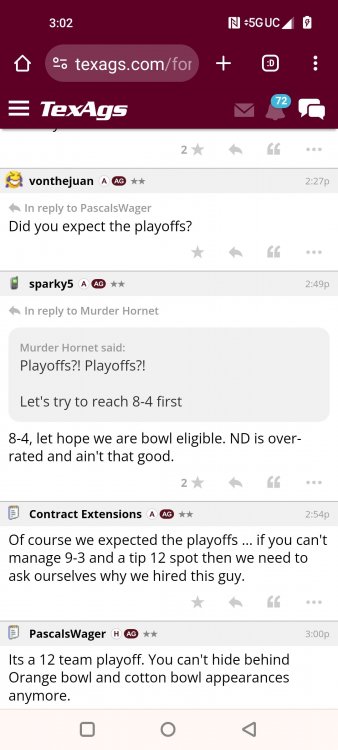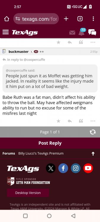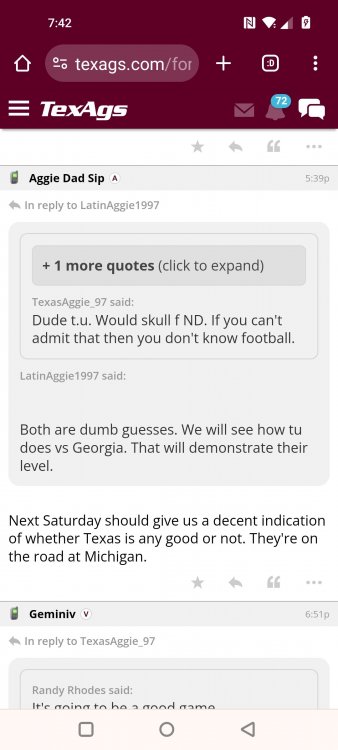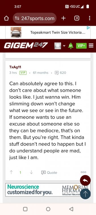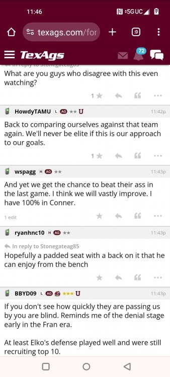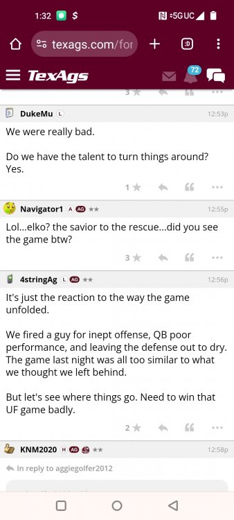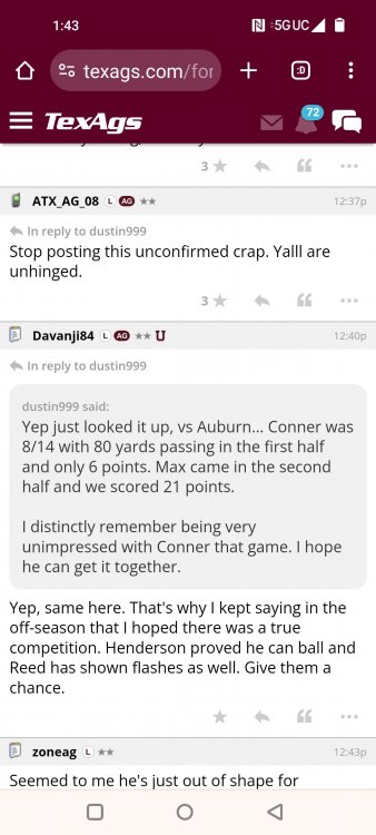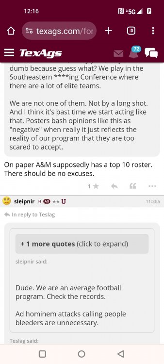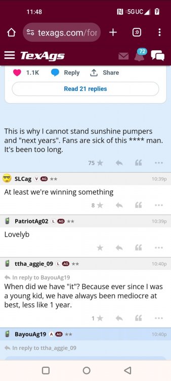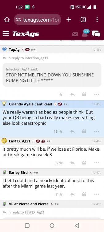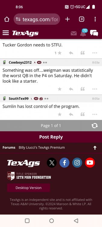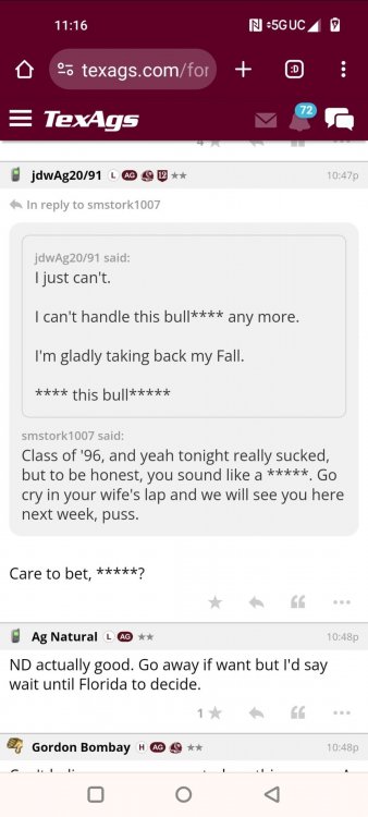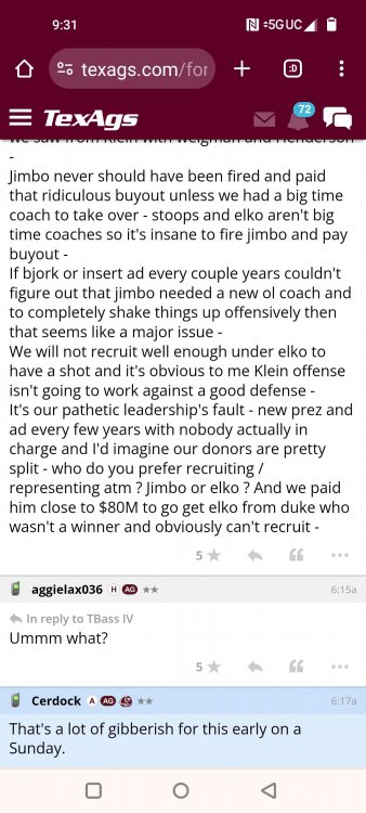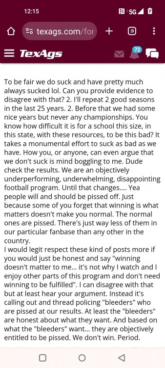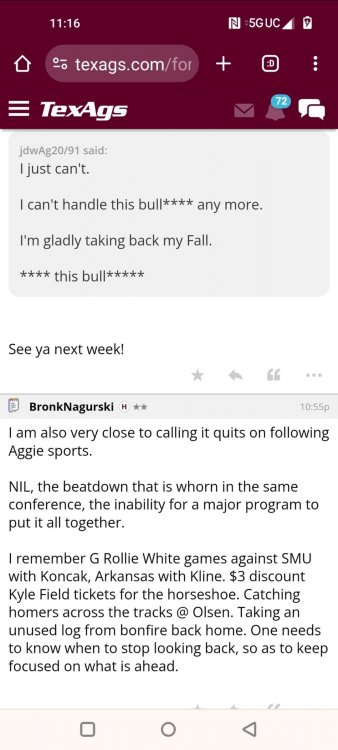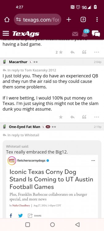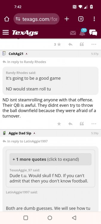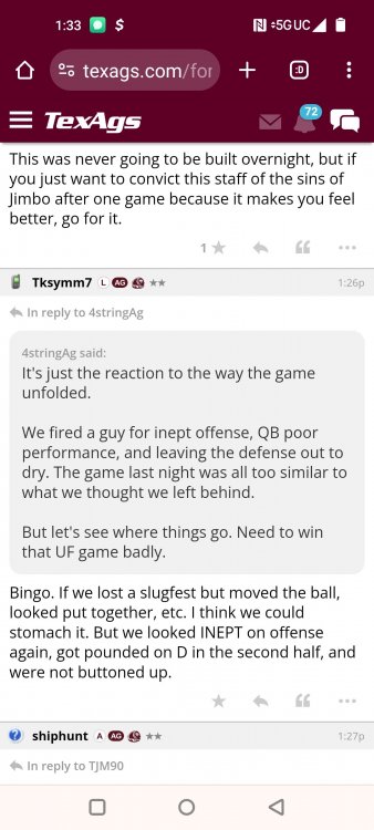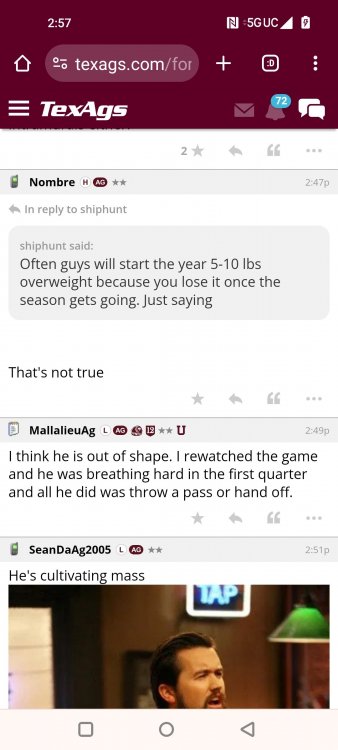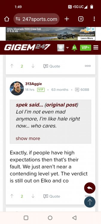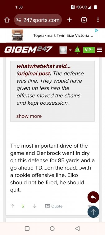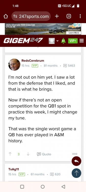 Liucci with a lot of words Saturday's pre-game build-up checked every box imaginable. The 12th Man and the Fighting Irish. The return of “Power.” Johnny f'ing Football and Nick Saban. Sports celebrities dotting the sidelines. Mike Elko leading the Aggies into battle for the first time. With 107k packed into Kyle Field under the glare of the national spotlight, the stage was set for an epic night in College Station. College football, the greatest sport in the country, is the pageantry, the tortuous offseason build-up and the realization that an entire season oftentimes feels like it hinges on a single game. That's what makes opening a season and, in this case, a new coaching tenure, with a premier opponent equal parts special and stressful. On Saturday night, as Notre Dame calmly marched 85 yards down the field for the game-winning touchdown late in the fourth quarter, Aggies and Irish alike felt like the 2024 campaign was hanging in the balance less than sixty minutes into a 12-game season. Unfortunately, the Aggies weren't quite ready for primetime, as Marcus Freeman, Riley Leonard and a terrific Irish defense proved a little too much during a “gut check” closing stretch. That, my friends, is why TexAgs and social media were on fire into the wee hours and why Notre Dame fans are likely breaking down what already looks like a clear path to the new 12-team playoff over Sunday brunch in South Bend. Unfortunately, the Aggies weren't quite ready for primetime, as Marcus Freeman, Riley Leonard and a terrific Irish defense proved a little too much during a “gut check” closing stretch. This should be a tough one for A&M fans — and, more importantly, the coaches and players in Bright — to process on the day after. In talking to folks both last night and already today, the overwhelming sentiment is “same song, different verse” and “here we go again.” Emotionally speaking, I get it. The offense and quarterback struggled to move the ball and produce points, and the Aggies dropped a very winnable big game, failing to capitalize on a golden opportunity. Despite losing the turnover battle 2-0 and not being able to generate anything in the passing game, the A&M defense took the field with 6:23 remaining in the fourth quarter, needing a stop to get the ball back and win the game. When the Ags are that close to securing a top-10 win to open not only the season but the Elko Era and can't get it done, every mistake and shortcoming is magnified, and the frustration is understandably much higher than after a run-of-the-mill A&M loss. We all know what the Ags left on the field last night, and no one understands that as much as the guys in the losing locker room. Had Conner Weigman hit Noah Thomas for a chunk gain past the A&M 40-yard line instead of sailing a throw that was picked off, do the Ags finish that drive out and go up 13-3 instead of watching the Irish tie it at 6-6? The Aggies were also on the move just before the break, but a second drive stalled in Irish territory following Weigman's uncharacteristic second interception. Maria Lysaker-USA TODAY Sports Not entirely impressive, Riley Leonard passed for just 158 yards and no touchdowns. He rushed for 63 yards. And the play of the game may have come when the Ags had the visitors right where they wanted them. With the game tied 13-13, Notre Dame took over deep in their own territory with under seven minutes remaining. A quick stop and the Aggie offense would take over in great field position, needing only a field goal to win it. The Irish were staring at a third-and-5 from their own 20-yard line, backed up in the deafening north end zone. The Ags had the defense on the field, needing a third-down stop (Notre Dame was just 2-for-10 on third downs, mind you) with the game hanging in the balance. It's exactly what Elko and everyone in that stadium wanted. And then Leonard converted, and then he hit Beaux Collins for a 20-yard gain on the visiting sideline. Then a few plays later, Jeremiyah Love burst into the end zone from 18 yards out, and the Aggies went from being in an excellent position to win the game to needing a small miracle. That's how close this one was...but it was also clear that Notre Dame was the better team (albeit very slightly) down the stretch. For the most part, Saturday night’s tug-of-war went pretty much as planned. As August drew to a close, this game had all the makings of a 23-20 or 20-17 type of affair, hence the 2.5-point line and O/U sitting somewhere around 43 points. I don't think Elko or Freeman would have offered much disagreement if you had told them the first one to 20 on Saturday would win. With the strength of both teams weighted heavily towards defense, a new OC on each sideline, one quarterback coming back from a season-ending injury and the other playing his first game in a new program, a 13-13 game in the fourth quarter could have been predicted. What wasn't expected is what has many wringing their hands while taking a peek at the SEC schedule. Weigman went just 12-for-30 for a mere 100 yards and two interceptions without a touchdown. The junior gunslinger was inaccurate down the field and looked very flustered by Freeman's man-heavy defense. In addition to turning the ball over, Weigman had a chance to shake off a bad night by leading the Ags down the field to tie the score in the final minutes. Instead, he threw three incompletions on four downs as Notre Dame sealed the win. That's not the Weigman we expected to see in 2024, nor is it the quarterback so many NFL scouts believed they'd seen on tape. Maria Lysaker-USA TODAY Sports According to Pro Football Focus, Conner Weigman’s passing grade vs. Notre Dame was a lackluster 28.0. Defensively, the Aggie defensive line played well for most of the game, but some long runs and Leonard knifing through creases on key downs resulted in nearly 200 rushing yards allowed. Irish offensive coordinator Mike Denbrock also called a good game and kept 