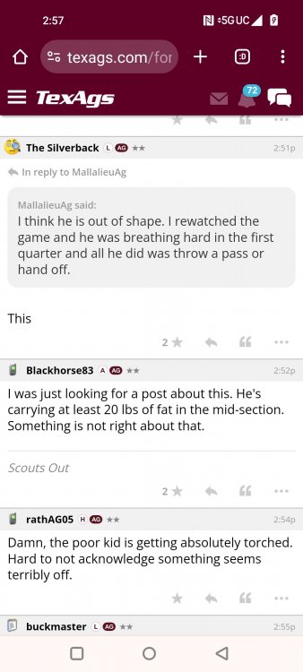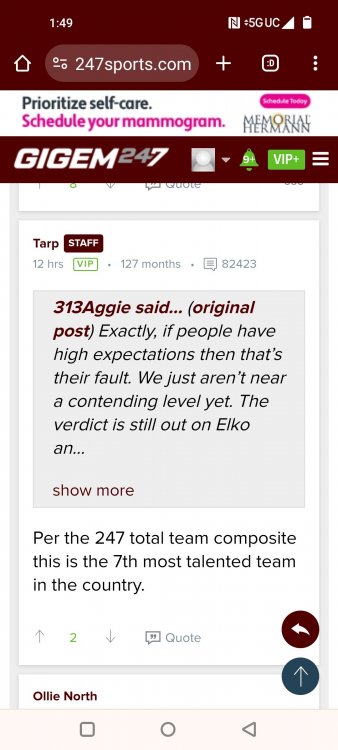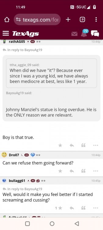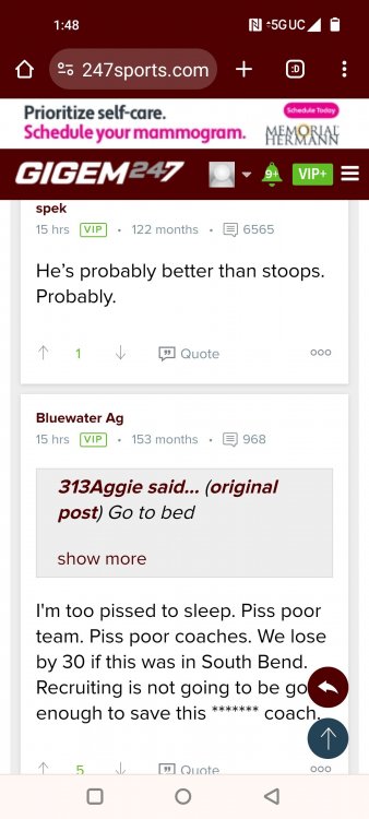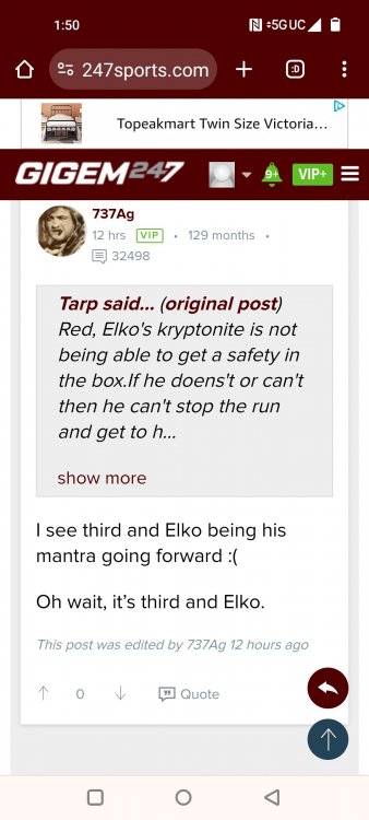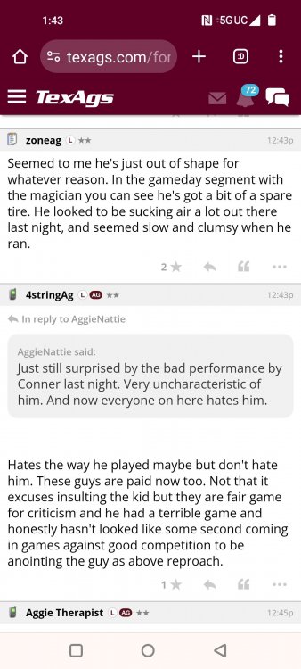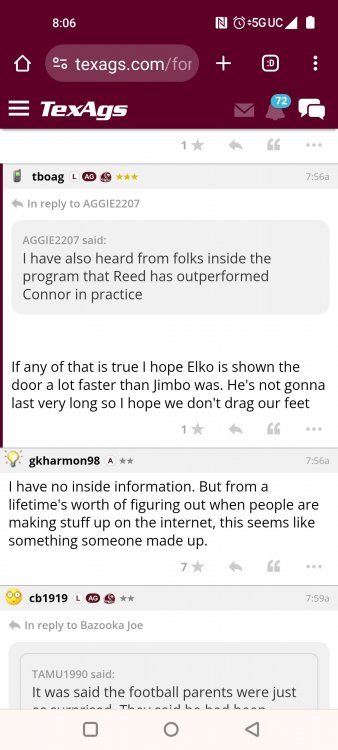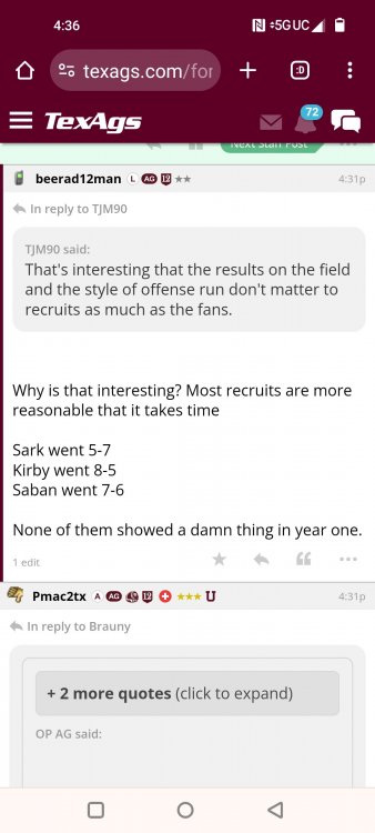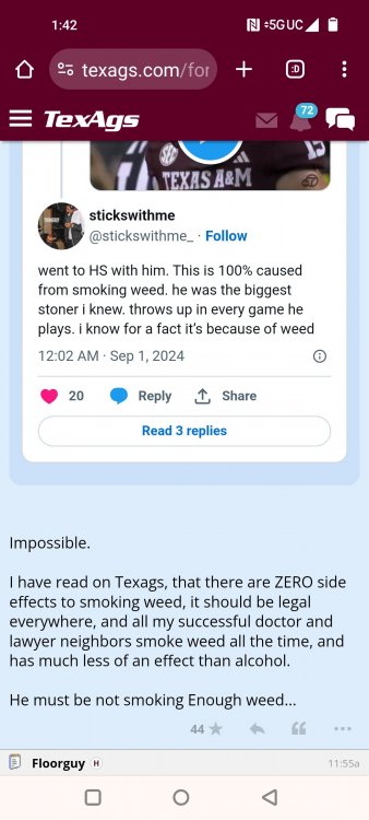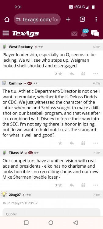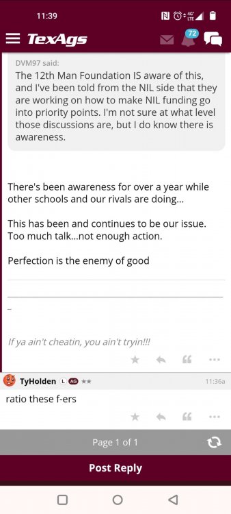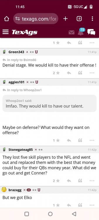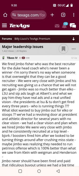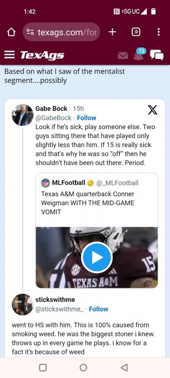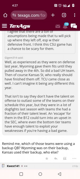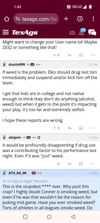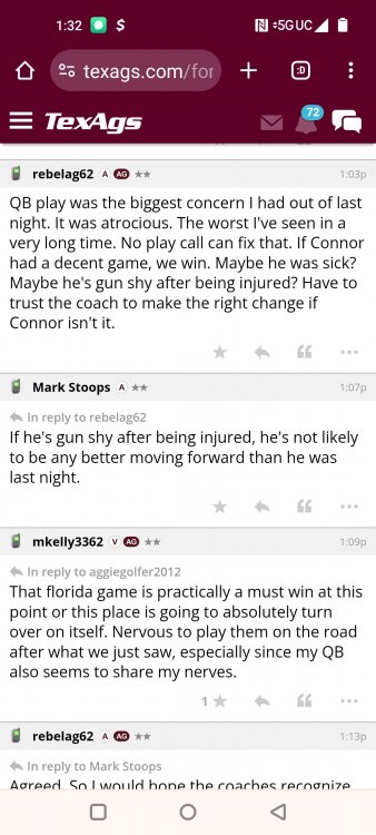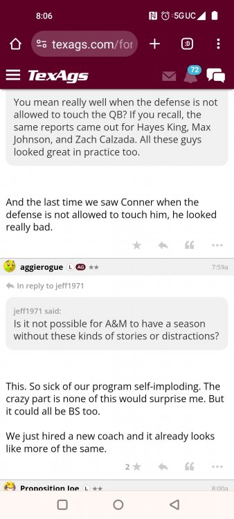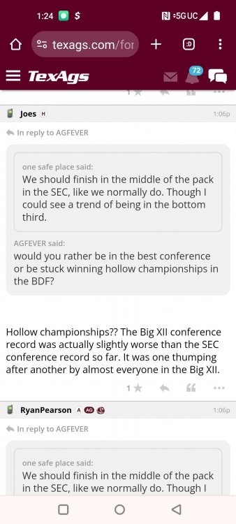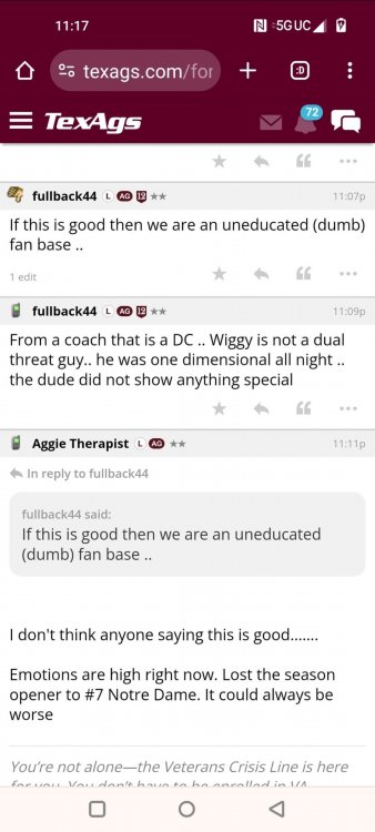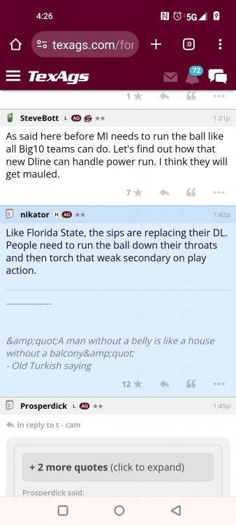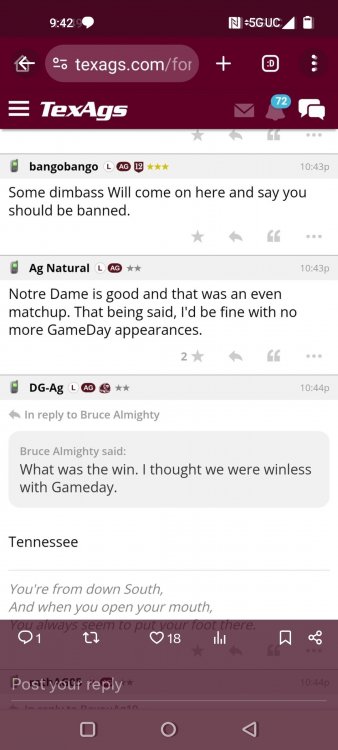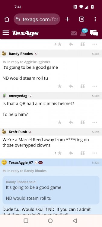 Liucci with a lot of words Saturday's pre-game build-up checked every box imaginable. The 12th Man and the Fighting Irish. The return of “Power.” Johnny f'ing Football and Nick Saban. Sports celebrities dotting the sidelines. Mike Elko leading the Aggies into battle for the first time. With 107k packed into Kyle Field under the glare of the national spotlight, the stage was set for an epic night in College Station. College football, the greatest sport in the country, is the pageantry, the tortuous offseason build-up and the realization that an entire season oftentimes feels like it hinges on a single game. That's what makes opening a season and, in this case, a new coaching tenure, with a premier opponent equal parts special and stressful. On Saturday night, as Notre Dame calmly marched 85 yards down the field for the game-winning touchdown late in the fourth quarter, Aggies and Irish alike felt like the 2024 campaign was hanging in the balance less than sixty minutes into a 12-game season. Unfortunately, the Aggies weren't quite ready for primetime, as Marcus Freeman, Riley Leonard and a terrific Irish defense proved a little too much during a “gut check” closing stretch. That, my friends, is why TexAgs and social media were on fire into the wee hours and why Notre Dame fans are likely breaking down what already looks like a clear path to the new 12-team playoff over Sunday brunch in South Bend. Unfortunately, the Aggies weren't quite ready for primetime, as Marcus Freeman, Riley Leonard and a terrific Irish defense proved a little too much during a “gut check” closing stretch. This should be a tough one for A&M fans — and, more importantly, the coaches and players in Bright — to process on the day after. In talking to folks both last night and already today, the overwhelming sentiment is “same song, different verse” and “here we go again.” Emotionally speaking, I get it. The offense and quarterback struggled to move the ball and produce points, and the Aggies dropped a very winnable big game, failing to capitalize on a golden opportunity. Despite losing the turnover battle 2-0 and not being able to generate anything in the passing game, the A&M defense took the field with 6:23 remaining in the fourth quarter, needing a stop to get the ball back and win the game. When the Ags are that close to securing a top-10 win to open not only the season but the Elko Era and can't get it done, every mistake and shortcoming is magnified, and the frustration is understandably much higher than after a run-of-the-mill A&M loss. We all know what the Ags left on the field last night, and no one understands that as much as the guys in the losing locker room. Had Conner Weigman hit Noah Thomas for a chunk gain past the A&M 40-yard line instead of sailing a throw that was picked off, do the Ags finish that drive out and go up 13-3 instead of watching the Irish tie it at 6-6? The Aggies were also on the move just before the break, but a second drive stalled in Irish territory following Weigman's uncharacteristic second interception. Maria Lysaker-USA TODAY Sports Not entirely impressive, Riley Leonard passed for just 158 yards and no touchdowns. He rushed for 63 yards. And the play of the game may have come when the Ags had the visitors right where they wanted them. With the game tied 13-13, Notre Dame took over deep in their own territory with under seven minutes remaining. A quick stop and the Aggie offense would take over in great field position, needing only a field goal to win it. The Irish were staring at a third-and-5 from their own 20-yard line, backed up in the deafening north end zone. The Ags had the defense on the field, needing a third-down stop (Notre Dame was just 2-for-10 on third downs, mind you) with the game hanging in the balance. It's exactly what Elko and everyone in that stadium wanted. And then Leonard converted, and then he hit Beaux Collins for a 20-yard gain on the visiting sideline. Then a few plays later, Jeremiyah Love burst into the end zone from 18 yards out, and the Aggies went from being in an excellent position to win the game to needing a small miracle. That's how close this one was...but it was also clear that Notre Dame was the better team (albeit very slightly) down the stretch. For the most part, Saturday night’s tug-of-war went pretty much as planned. As August drew to a close, this game had all the makings of a 23-20 or 20-17 type of affair, hence the 2.5-point line and O/U sitting somewhere around 43 points. I don't think Elko or Freeman would have offered much disagreement if you had told them the first one to 20 on Saturday would win. With the strength of both teams weighted heavily towards defense, a new OC on each sideline, one quarterback coming back from a season-ending injury and the other playing his first game in a new program, a 13-13 game in the fourth quarter could have been predicted. What wasn't expected is what has many wringing their hands while taking a peek at the SEC schedule. Weigman went just 12-for-30 for a mere 100 yards and two interceptions without a touchdown. The junior gunslinger was inaccurate down the field and looked very flustered by Freeman's man-heavy defense. In addition to turning the ball over, Weigman had a chance to shake off a bad night by leading the Ags down the field to tie the score in the final minutes. Instead, he threw three incompletions on four downs as Notre Dame sealed the win. That's not the Weigman we expected to see in 2024, nor is it the quarterback so many NFL scouts believed they'd seen on tape. Maria Lysaker-USA TODAY Sports According to Pro Football Focus, Conner Weigman’s passing grade vs. Notre Dame was a lackluster 28.0. Defensively, the Aggie defensive line played well for most of the game, but some long runs and Leonard knifing through creases on key downs resulted in nearly 200 rushing yards allowed. Irish offensive coordinator Mike Denbrock also called a good game and kept 
