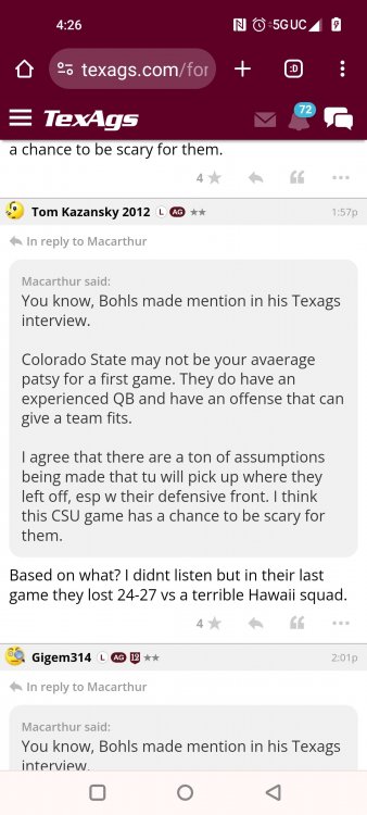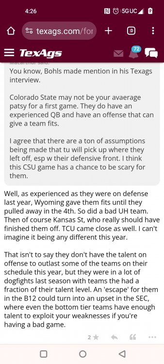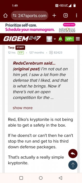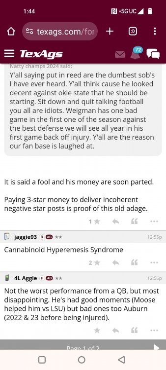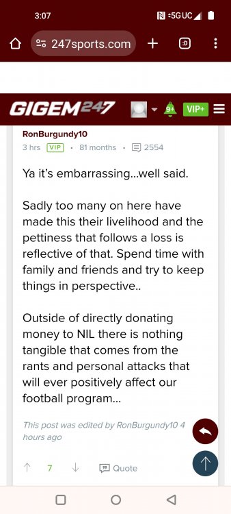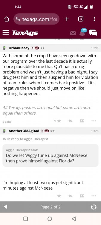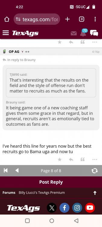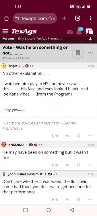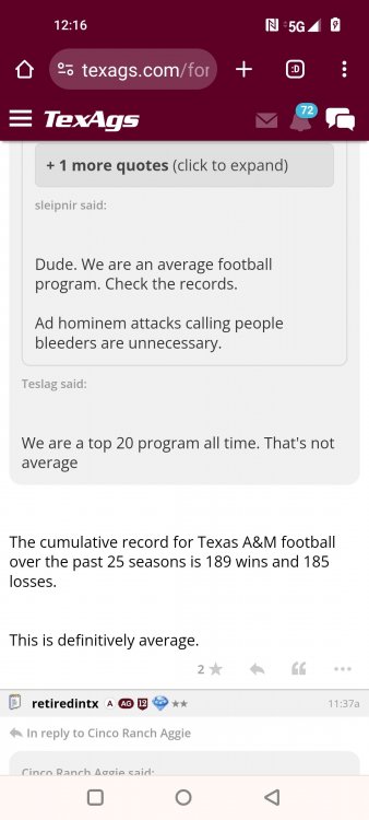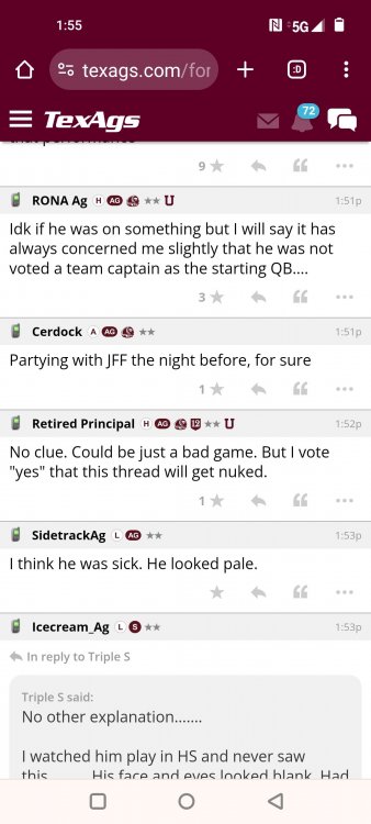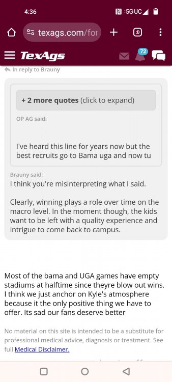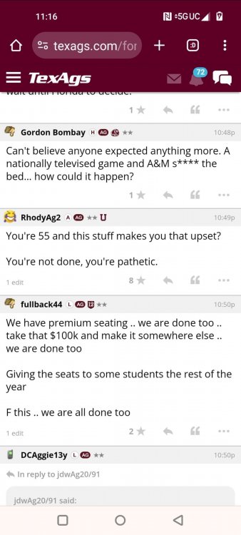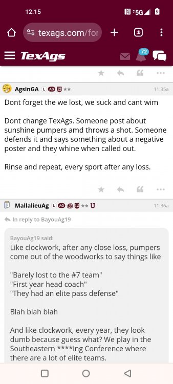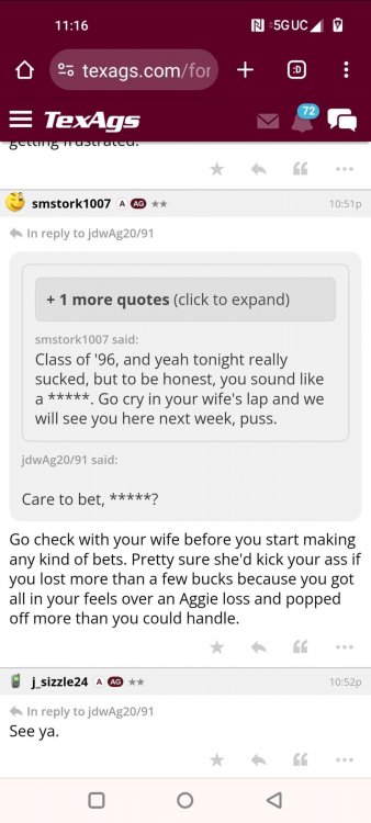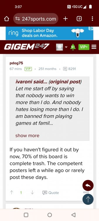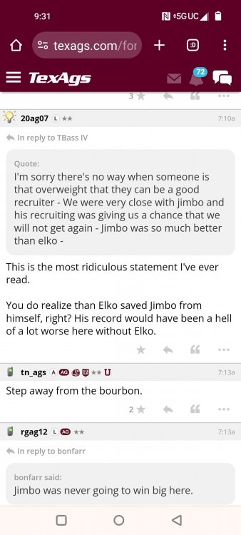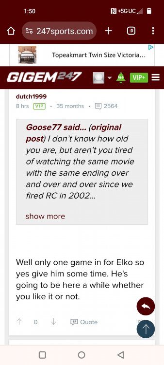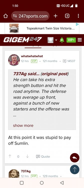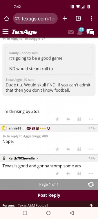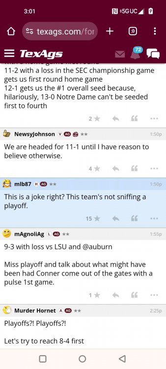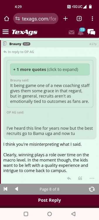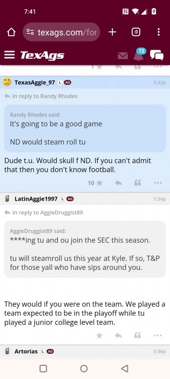 Liucci with a lot of words Saturday's pre-game build-up checked every box imaginable. The 12th Man and the Fighting Irish. The return of “Power.” Johnny f'ing Football and Nick Saban. Sports celebrities dotting the sidelines. Mike Elko leading the Aggies into battle for the first time. With 107k packed into Kyle Field under the glare of the national spotlight, the stage was set for an epic night in College Station. College football, the greatest sport in the country, is the pageantry, the tortuous offseason build-up and the realization that an entire season oftentimes feels like it hinges on a single game. That's what makes opening a season and, in this case, a new coaching tenure, with a premier opponent equal parts special and stressful. On Saturday night, as Notre Dame calmly marched 85 yards down the field for the game-winning touchdown late in the fourth quarter, Aggies and Irish alike felt like the 2024 campaign was hanging in the balance less than sixty minutes into a 12-game season. Unfortunately, the Aggies weren't quite ready for primetime, as Marcus Freeman, Riley Leonard and a terrific Irish defense proved a little too much during a “gut check” closing stretch. That, my friends, is why TexAgs and social media were on fire into the wee hours and why Notre Dame fans are likely breaking down what already looks like a clear path to the new 12-team playoff over Sunday brunch in South Bend. Unfortunately, the Aggies weren't quite ready for primetime, as Marcus Freeman, Riley Leonard and a terrific Irish defense proved a little too much during a “gut check” closing stretch. This should be a tough one for A&M fans — and, more importantly, the coaches and players in Bright — to process on the day after. In talking to folks both last night and already today, the overwhelming sentiment is “same song, different verse” and “here we go again.” Emotionally speaking, I get it. The offense and quarterback struggled to move the ball and produce points, and the Aggies dropped a very winnable big game, failing to capitalize on a golden opportunity. Despite losing the turnover battle 2-0 and not being able to generate anything in the passing game, the A&M defense took the field with 6:23 remaining in the fourth quarter, needing a stop to get the ball back and win the game. When the Ags are that close to securing a top-10 win to open not only the season but the Elko Era and can't get it done, every mistake and shortcoming is magnified, and the frustration is understandably much higher than after a run-of-the-mill A&M loss. We all know what the Ags left on the field last night, and no one understands that as much as the guys in the losing locker room. Had Conner Weigman hit Noah Thomas for a chunk gain past the A&M 40-yard line instead of sailing a throw that was picked off, do the Ags finish that drive out and go up 13-3 instead of watching the Irish tie it at 6-6? The Aggies were also on the move just before the break, but a second drive stalled in Irish territory following Weigman's uncharacteristic second interception. Maria Lysaker-USA TODAY Sports Not entirely impressive, Riley Leonard passed for just 158 yards and no touchdowns. He rushed for 63 yards. And the play of the game may have come when the Ags had the visitors right where they wanted them. With the game tied 13-13, Notre Dame took over deep in their own territory with under seven minutes remaining. A quick stop and the Aggie offense would take over in great field position, needing only a field goal to win it. The Irish were staring at a third-and-5 from their own 20-yard line, backed up in the deafening north end zone. The Ags had the defense on the field, needing a third-down stop (Notre Dame was just 2-for-10 on third downs, mind you) with the game hanging in the balance. It's exactly what Elko and everyone in that stadium wanted. And then Leonard converted, and then he hit Beaux Collins for a 20-yard gain on the visiting sideline. Then a few plays later, Jeremiyah Love burst into the end zone from 18 yards out, and the Aggies went from being in an excellent position to win the game to needing a small miracle. That's how close this one was...but it was also clear that Notre Dame was the better team (albeit very slightly) down the stretch. For the most part, Saturday night’s tug-of-war went pretty much as planned. As August drew to a close, this game had all the makings of a 23-20 or 20-17 type of affair, hence the 2.5-point line and O/U sitting somewhere around 43 points. I don't think Elko or Freeman would have offered much disagreement if you had told them the first one to 20 on Saturday would win. With the strength of both teams weighted heavily towards defense, a new OC on each sideline, one quarterback coming back from a season-ending injury and the other playing his first game in a new program, a 13-13 game in the fourth quarter could have been predicted. What wasn't expected is what has many wringing their hands while taking a peek at the SEC schedule. Weigman went just 12-for-30 for a mere 100 yards and two interceptions without a touchdown. The junior gunslinger was inaccurate down the field and looked very flustered by Freeman's man-heavy defense. In addition to turning the ball over, Weigman had a chance to shake off a bad night by leading the Ags down the field to tie the score in the final minutes. Instead, he threw three incompletions on four downs as Notre Dame sealed the win. That's not the Weigman we expected to see in 2024, nor is it the quarterback so many NFL scouts believed they'd seen on tape. Maria Lysaker-USA TODAY Sports According to Pro Football Focus, Conner Weigman’s passing grade vs. Notre Dame was a lackluster 28.0. Defensively, the Aggie defensive line played well for most of the game, but some long runs and Leonard knifing through creases on key downs resulted in nearly 200 rushing yards allowed. Irish offensive coordinator Mike Denbrock also called a good game and kept 