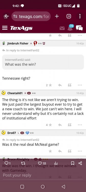 Football ... Basketball ... Baseball ... Other Sports ... Futbol ... 🤫995🤫 ... Gambling ... Movies & TV ... Music ... Hobbies ... Lulz ... Food & Travel ... Daily Texan ... Business and Markets ... Cloak Room ... Help ... For Sale ... Board Discussion ... Subscribe!... Donate!... COOKIE MONSTER!