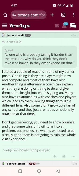 Texas A&M Football Recruiting Recruiting Country: By Jason Howell august 28, Key notes from Recruiting Country Let me throw down some stats for you. Over 120 recruits are coming in this weekend. We've got eight of the Texas top 10 in the 2026 class, 16 of the TexAgs top 20, and 25 in the top 30. Pretty much everyone who isn't playing a football game this Saturday is planning to be in College Station to see what that atmosphere is all about. It will be a monster weekend to set the table for that 2026 recruiting class. You have some really big targets in the 2025. Then there's the out-of-state talent and the 2027 and 2028 class there. Anytime you get a night game with a College GameDay in town with a big-time opponent, Notre Dame, whether they're ranked in the top 10 or not, just the history of their team as well as the history with each other, it's going to attract a lot of attention. This will kick off the storylines and the ties between the two programs, and it's a way to showcase Kyle Field and the 12th Man at its finest. It's always going to leave a great impression. A&M, with a big game atmosphere, will always be top-notch. I don't think I've seen this many prospects before. Alabama weekend in 2021, Miami weekend a few years ago, and Clemson in 2018 was a pretty big weekend. We've had big ones, but this one is as big or bigger than anyone we've ever seen. People talk about Husan Longstreet’s hand size as much as anything. He can grip it and rip it. He is one of the top QBs in the country because of his quick release, ability to throw with accuracy and ability to hit every place on the field. Also, the intangible side. He does his thing, and he leads with a quiet intensity. When he speaks, people listen. He brings business when he's out on the field. Conner Weigman mentality is a good comparison to me. They won't always be the most vocal, but when things need to be said, they know how to say it. Losing Michael Fasusi and Jonah Williams hurt. You want to win those guys, but you can't lose sight of what you have. Guys like Husan Longstreet, Adonyss Currie, Deyjhon Pettaway, Deondrae Riden, you've got offensive lines that are all considered top 40-50 Texas players and the top interior offensive lineman committed in the state of Texas. Husan Longstreet has played a big part in that. Noah Mikhail, one of the top linebackers in the country, committed. They all seem to have connected well. They talk about brotherhood, and we've heard it before, but there is. A bond there that has solidified with those guys. You've got a chance to make some moves with some of those guys who committed elsewhere or with Jerome Myles, who was a five-star receiver out of Utah and will be in town this weekend. Many of these recruits haven't been to Kyle Field, and I have a feeling that that will be an experience they won't ever forget. Jerome Myles is 6-foot-3, 220 pounds, runs a sub 4.5 40-yard has a 10.3 100-meter. He really blew up over the course of the spring. He stepped up huge in the playoffs. Deep ball threat. The guy who has the physicality to go up and attack that ball. He's averaging about 25 yards a reception and a touchdown every other time he touches the ball. He was player of the week last week against IMG. The raw numbers and the speed remind me a lot of DK Metcalf when he came out of Oxford, Mississippi. With him, Tristan Norman, and Kelshaun Johnson, you've got three guys that could be on anyone's track team. That's a lot of speed, athleticism and versatility. Norman is coming off a big game where he scored a 48-yard touchdown and had a two-point conversion. I am excited to see what Kelshaun Johnson does. They are all known as big threats. Johnson is an incredible route runner and very quick. Those are three really good receivers that bring a lot to the table. I mentioned Connor Carty, one of the country's top interior offensive linemen and the top in the state. He has been a mainstay at Prosper. Prosper has five offensive linemen, and four of them are going to be in town this weekend. All five of them have FBS scholarships. They pump out offensive line recruits. Jonte Newman is a guy that Conner Weigman talked about, and they connected and talked about being roommates. He can play guard or tackle. You got Marcus Garcia at Denton Ryan, one of the top programs in the state. They play with a lot of grit, and he's also one of the top throwers in the state of Texas, so he brings that athleticism. Tyler Thomas at Dickinson is another big-body athlete who has done much this offseason, continuing to reshape his body. He is penciled in more as a guard but also has that tackle potential. Josh Moses was the first commitment of that class who is being looked at as a center guard prospect. Deondrae “Tiger” Riden is a guy I think is someone who gets slept on by the fanbase. He's been tested, he's a multi-year starter, and I think he can make an impact as soon as he hits the field. There is some conscious effort to target California. The Pac-12 imploding really helps the Aggies get in there. That vulnerability and what Texas A&M offers attracted a lot of attention. You get a guy like Husan Longstreet, who can be your cowbell and Noah Mikhail, and you get some eyes opened out there. Those guys helping those efforts helped A&M put together a strong group from the state of California. I think all of them will be in Kyle Field over the weekend. I don't know if I would say Utah is the team to beat for Jerome Myles. They are at the very top with Ohio State and Texas A&M. There are probably about four or five that you could switch in and out. Those are three contenders, and then maybe an Auburn or LSU. The Utes are going to be a factor, but I expect the Aggies to put a good foot forward. Getting a second running back is possible, but it has to be the right guy. We have talked about Jamarion Morrow, who is committed to Missouri. He is committed, but keep an eye on him. That is a guy Trooper Taylor had his eyes o