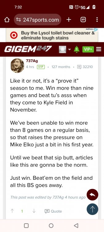 TEXAS A&M AGGIES Carter Karels, GigEm247 Compared to the average preseason, fan anticipation for this season is high, medium or low? Why? High. They have a new head coach, in Mike Elko. They still have a lot of the best players from their vaunted 2022 recruiting class, including QB Conner Weigman, DE Shemar Stewart and safety Bryce Anderson. They brought in one of the best transfer classes in the country, led by DE Nic Scourton (Purdue). Perhaps most importantly, A&M has its most favorable schedule in years. The Aggies will not play Alabama or Georgia, and their four biggest games (Notre Dame, Missouri, LSU and Texas) are all at home. Coming off a 7-6 season, A&M is not expecting a rebuild. The Aggies expect an awesome season. What record would be a passable season for Texas A&M? 9-3. With its favorable schedule, A&M has a huge opportunity to make a splash in Elko's first season. The Aggies would make that splash by going at least 10-2. While a 9-3 record probably will not get you into the 12-team CFP, 10-2 likely will if you are an SEC team. Still, 9-3 would be good for an A&M program that hasn't gotten over the eight-win hump very much in recent memory. The Aggies have finished a season with nine wins only twice in the last decade. Also, their over/under win total in Vegas is at 8.5. Your fanbase's reaction to the new-look SEC is ... Annoyed. Texas A&M joined the SEC to get away from Texas and create its own identity. While the Aggies have not been world beaters in the SEC, they have done a nice job of building their brand and becoming a program that cannot be overlooked nationally. Now, the Longhorns are back in the SEC and have all the makings of a team that could win big immediately. It has the feeling of a high school reunion where the guy who got bullied feels like he is better than his bully after all these years, but then the bully shows up in a Lambo. Is NIL alignment at your program above average, average or below average. Why? Above average. Texas A&M's NIL collective, Texas Aggies United, will not disclose much publicly. But the Aggies are among the best in the NIL game and have shown that under Elko. It is a big reason why they had one of the best transfer portal classes and have been very impressive with their 2025 recruiting. What issue keeps your fanbase up at night? Texas joining the SEC and being immediately amazing. Aggie fans might not want to admit it, but I am sure the thought of the Longhorns coming into their conference and immediately winning big would make them want to vomit. It is why it is crucial for Elko to take advantage of this schedule and have a very successful first season -