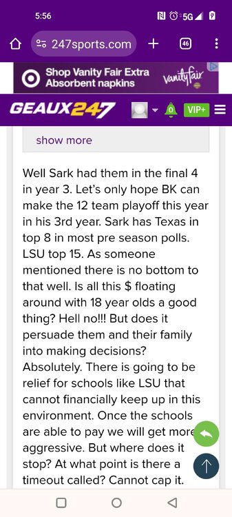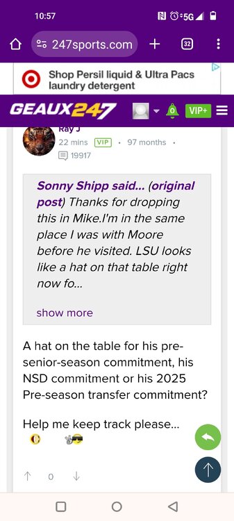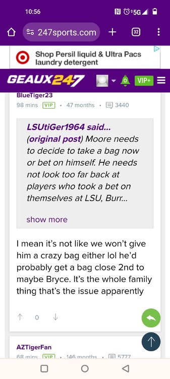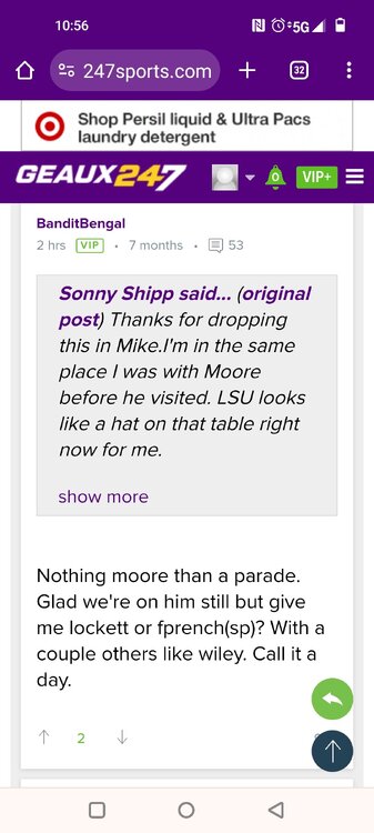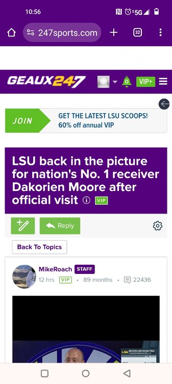Glen WestSTAFF Posted on 61 mins, V I P, User Since 38 months ago, User Post It's a lighter weekend in terms of official visitors with just one big piece of the 2025 class making his way to town and getting the full experience with the staff. Wide receiver Dakorien Moore touched down in New Orleans and made the drive up to Baton Rouge to start his visit on Thursday. The five-star prospect who decommitted from LSU a few weeks back, made the purple and gold his second stop as he also considers Ohio State, Texas and Oregon as his final four schools. Here's the latest on his visit as he enters a full day of activities on Friday. -We're told it's a family affair this weekend with not only Moore and his mother making it in but a total of six family members, including his little brother, aunt and uncle. That's a part of this visit that was extremely important as the purple and gold look to make up some ground after Moore's decision to back off his commitment. -The first order of business for Moore was a marketing presentation on what the Tigers would be able to do in terms of building his brand off the field while a member of the program. That includes endorsement opportunities that have been popular for players like John Deere, Walk-Ons, Raising Canes and Gordon McKernan law firm. -NIL is clearly going to play a big role in this recruitment and LSU is willing to play ball with these high school recruits. -For this particular visit, it's also important for Moore to get some one-on-one time with head coach Brian Kelly. That happened on Thursday and it'll be interesting to see how the rest of the staff like Cortez Hankton, Frank Wilson and Joe Sloan handle Moore being on campus and how he could be a significant piece for this offense on the field. -The feeling around the visit is that Moore, his mother and the entire family really seem engaged early in the process. That's far from the most popular endorsement but the Tigers will keep chipping away on this visit. There will be a lot at play with this recruitment and while it's hard to feel good about the position LSU is in, what intel comes out of the visit will be interesting in terms of how serious Moore is about the Tigers going forward. -Moore will be in all day Friday before heading back Saturday so it's a pretty extended stay where LSU should be able to put its best foot forward. -In addition to Moore, LSU has already had Kaliq Lockett and Jaime Ffrench on campus and will have CJ Wiley and Naeshaun Montgomery in town next weekend and Derek Meadows on campus June 18. -We'll have more on the Elite camp that took place on Thursday afternoon a little bit later this morning but one quick note on a 2026 prospect Deuce Geralds. He's put on 20 pounds since he was last on campus during the 2023 season. That's 273 pounds for him and the thought process going forward is that LSU will recruit him inside rather than as an edge rusher -