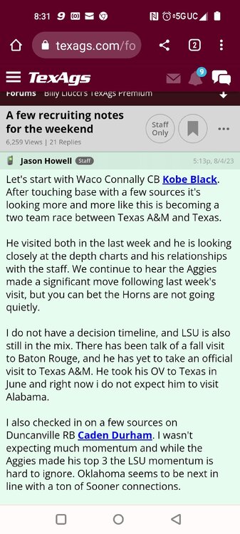 Since Texas will be competing for more SEC type recruits. I'll try to post all other SEC schools in here.