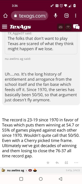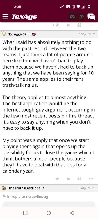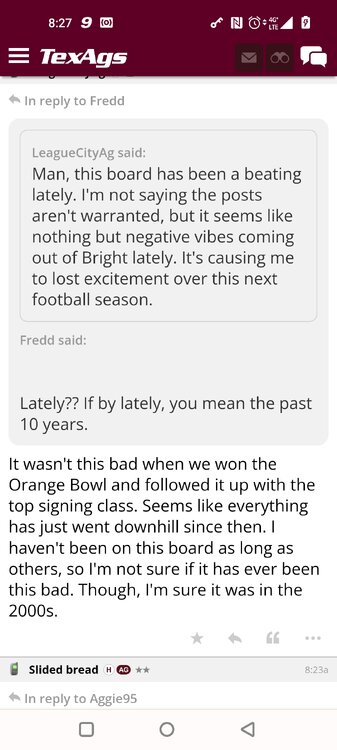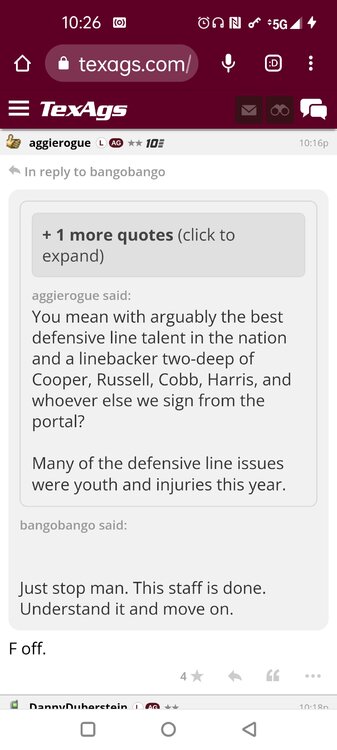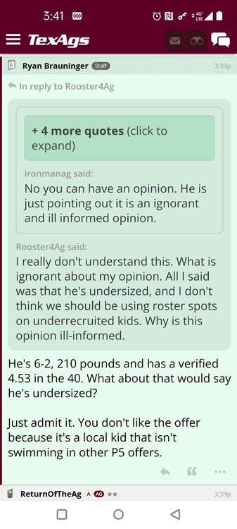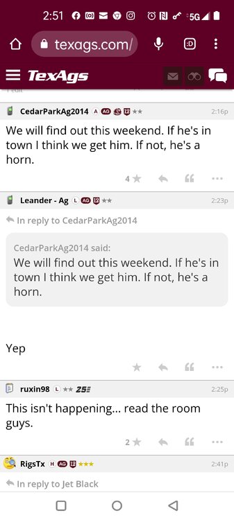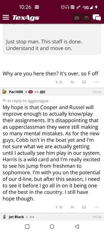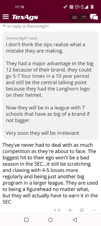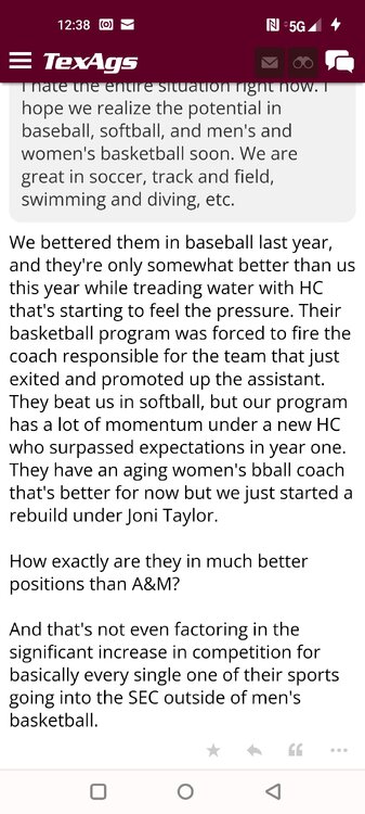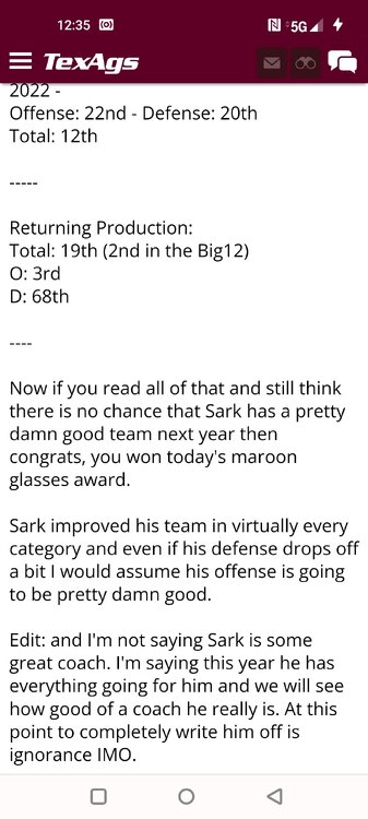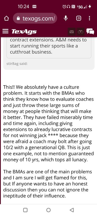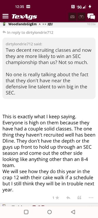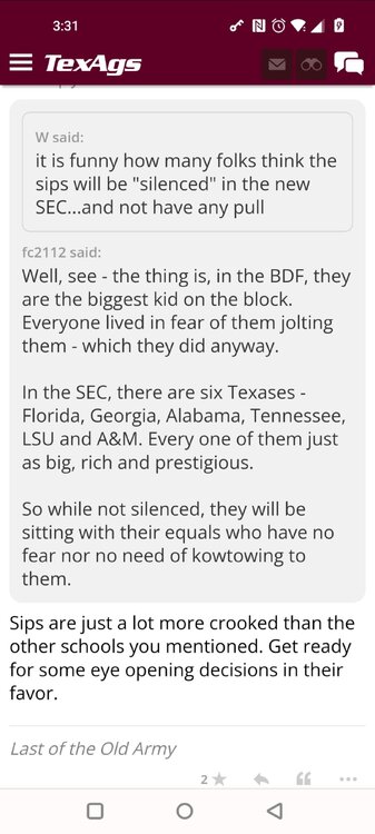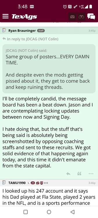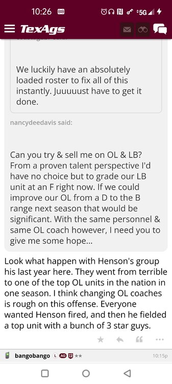 ForumsBilly Liucci's TexAgs Premium Quick OC note (Petrino-related) 2,113 Views | 35 Replies Staff Only ... Liucci Staff So here's where things stand as of today: As you all saw this morning, Bobby Petrino has accepted a spot on Barry Odom's UNLV staff in the OC role. He was ready to make the jump back out of FCS ball and waited to see what A&M and a couple of other SEC programs would do as long as he could. However, I'm here to tell you that if the Ags or another name program in the conference decided Petrino was the guy, Odom and the Rebels would have a very hard time keeping him in Vegas. That's just the way of the world when it comes to the college football hierarchy. So what I'm saying is I wouldn't completely rule this one out, though it's far less likely than it was. Even then, of course, Petrino was A candidate and not THE candidate, which I said several times last week though those railing against the 'hire' were more interesting in going apoplectic on the boards and social media. I said last week that the Ags were actively engaged with two other candidates, as well. Those two are still very much in play and are guys I believe Jimbo Fisher could have as soon as he decides to go. However, I think we all understand there's a reason why neither those guys nor Petrino have gotten the call just yet. Why do I say that? Because the Ags aren't sitting around waiting until after the bowl games are played and it's my understanding that the aim is to have this thing wrapped up either before or shortly after next week's Early Signing Day. If one of the guys were leaping off of the page above the others, I think we'd be talking about the next Aggie play-caller by now. Now, there are a few of you who won't let it go and feel the need to hold whatever I say against me despite the fact that what I'm saying is accurate and you're just railing to rail about something so let me be as clear as I can: Having someone hired by Signing Day (a week or so from now) is the 'aim.' It's a moving target and if Fisher decides to wait things out in search of a better fit or more qualified or celebrated candidate, then that's what he'll do. We've seen Jimbo do it before and, once we pass NSD, the pressure to get something done in an instant is essentially behind us. With that said, word I received today is that the goal is to wrap this thing up before the holidays and not after and the three names I was told are still out there. Despite today's Petrino news, the Ags are sitting on the same three candidates they were several days ago but my personal opinion is that the head coach is still looking for the perfect fit. A couple of other things to help provide some clarity: -Don't waste your time tracking flights. Some of you are just stirring up false hope or random candidates because - in 2022 - Fisher and the Ags aren't flying guys to College Station to risk outing candidates when you can simply get things done via zoom. Believe me or not, I'm simply here trying to save you guys some time and mental energy. -There are candidates who were under consideration that Fisher could have had and locked but the Ags chose not to go that particular route. We'll see if the Aggies end up in a better situation or not but that list has included the likes of Phil Longo (Wisconsin), Petrino (UNLV) and recent South Carolina hire Dowell Loggins. At least one other sitting SEC OC has made it clear he'd love the job but Fisher and the Ags decided against adding him to the interview list. In a perfect world, I believe we'd be talking about either Garrett Riley or Dan Mullen as the Aggie OC today and I've been pretty clear why neither of those things happened. Beyond that, much of the hand-wringing you're seeing here hasn't been shared across the street at Bright. Doesn't change the fact that Fisher has to get this one right, however. And so we wait a little longer and reserve judgement