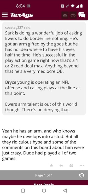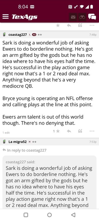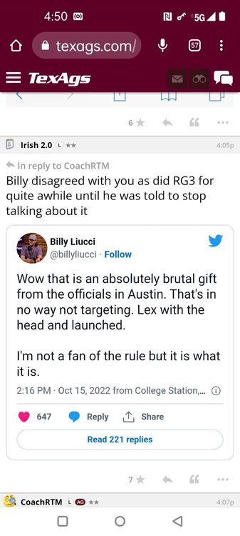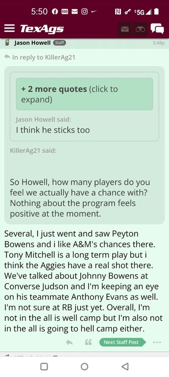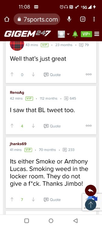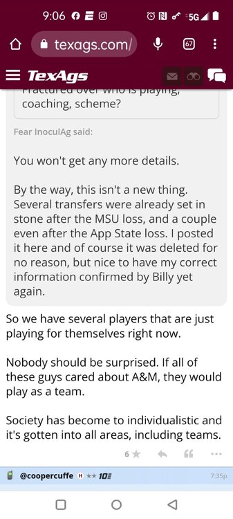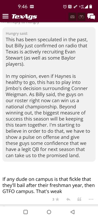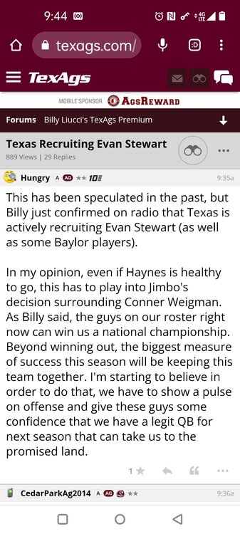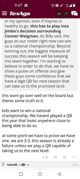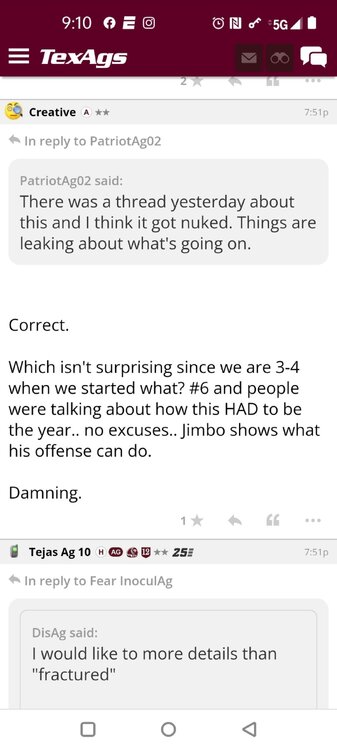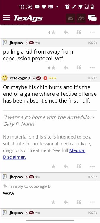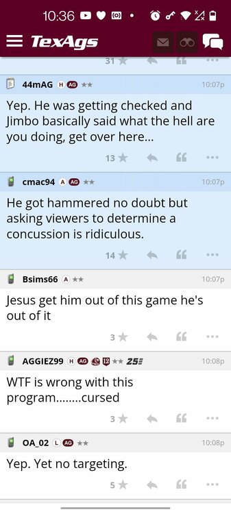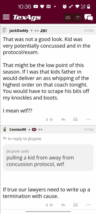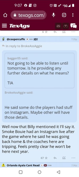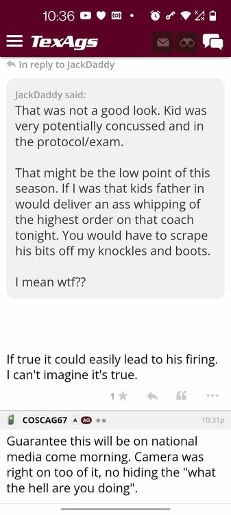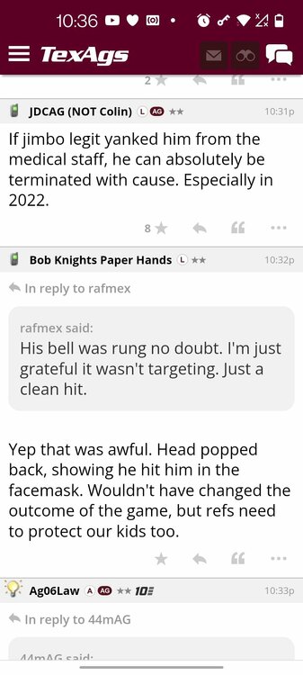 Rumor on aggy board Haynes King is he's in a boot also broken rib. The aggy ministry hasn't deleted the thread or locked it