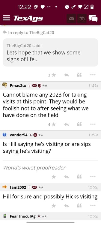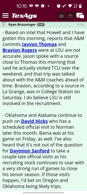 Malik Muhammad recaps official visit to Aggieland Jason Howell Dallas South Oak Cliff All-American cornerback and Texas commit Malik Muhammad took an official visit to Texas A&M over the weekend. He made the trip with a few friends and family, and while it was not his first trip to Aggieland, it was his first game day in College Station. Afterward, Muhammad spoke to TexAgs about his weekend experience. How did it feel to be back in Aggieland? It felt good. I promised the coaches I would take an official visit and I’d return to Aggieland. But I had to find out what date and found out what time I was available to do that. Last weekend, I did. Who all came with you, and what was the vibe like? I brought four of my sisters and two of my teammates along with my dad. Who was your player host, and what was your favorite part of the visit? Bobby (Taylor) and Evan (Stewart), and just getting to meet with the coaches and talk with the coaches and the recruiting people and talking with Jimbo. What was their message while you were in town? They were just basically selling the team they’ll have in the future. Being with their new quarterback, the youngness of the team, and they were just telling me they’re going to recruit me until the end, and they were just saying they are going to get me What was going through your head when you walked on the field for your first game day experience in College Station? I was like, “Man, this place is lit.” But as far as the game standpoint, I was like, “We got to come out and handle business.” That’s what I told the coach. “We’re here to handle business.” What stands out about the relationship you have with coach Rushing? He’s really like a players' coach. Me and him, since I’ve met him, we’ve been getting along. He’s kind of goofy like me, and he knows some ball. He’s just a players’ coach. How’s that relationship been since your commitment? Has he remained in close communication? We’ve remained in contact. He’s actually been texting me more. I know Texas A&M commit and South Oak Cliff teammate Jayvon Thomas has stayed in your ear. What has he had to say? (Laughing) He just tells me Texas can’t play no real defense. What were your biggest takeaways from the visit? They showed my family great hospitality, and then they made me feel like I was needed. That was really it. They really showed their hospitality to my family and my sisters and my dad and them and made sure everybody was good. Made sure I had way more than enough to eat. What was the best meal you had? We had Wing Stop. We had Chick-Fil-A. We had seafood…we did it all. What are your next visit plans and next steps in your process? I’ll talk to my dad and see what he’s been talking about because Miami and Florida have been recruiting hard lately. Do you have any others scheduled? No, I don’t have any others scheduled yet. How do the Aggies fit in the mix following your visit? The Aggies are applying more pressure. I haven’t signed a piece of paper yet, so it is what it is. The Aggies are still in the top three. What is it about the Texas A&M program that continues to put them high on your list? Man, the team they’ve got is so young. They’re playing 19 freshmen, and just to see how dangerous these freshmen are playing with these grown men, it’s crazy. You can see the future ahead. I mean, look at Evan Stewart and Conner Weigman. They’re playing. I mean, just the thought of A&M’s defense, their defensive line, and then also with them starting to get the offense together