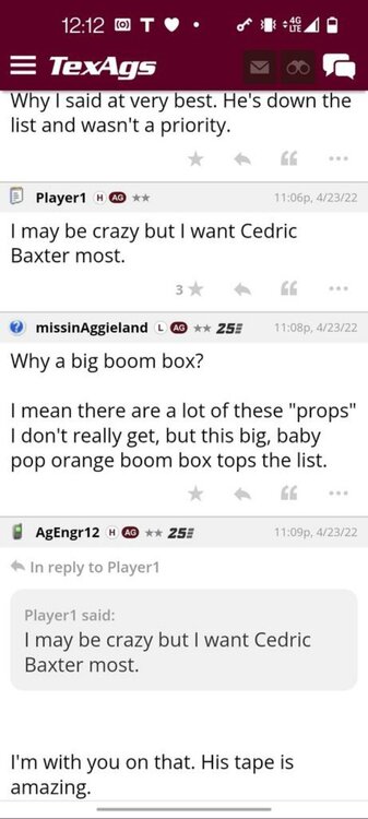 3. Jason Howell Staff 10:40p, 4/10/22 Let's talk about the weekend Well you guys saw there was an open back and forth between several top 2023s on Twitter this evening. Johntay Cook tweeted "A weekend to remember" and the discussion went from there with Tony Mitchell, Javien Toviano, and Malik Muhammad among those chiming in. It appears there's a group discussing their college plans and maybe trying to replicate what the Aggies did in 2022 with the 2023 class.No decisions were announced, but it is pretty evident the Aggies made some strong moves this weekend. Let's start with Johntay Cook. Texas and Texas A&M have been the subject of much talk with the DeSoto standout. He has not narrowed his list to those two but the Aggies and Longhorns are definitely the most discussed as his leaders. I have always heard the Aggies were in a great spot there and possibly the leader and this weekend I hear the Aggies have only strengthened their position. Now for Malik Muhammad. He has made no secret of his interest in Texas A&M. He has said they are in his top five numerous times and has already stated the Aggies would get an official visit. That said, going into the weekend word was Alabama and Nick Saban was making a strong punch for the top spot. After the weekend, sources tell me the Aggies have made a strong move of their own and it sounds like they may have made their way to the top of his list. Arlington Martin standout Javien Toviano made a surprise move when he made his way to College Station twice this week. He visited Thursday and returned on Saturday. He has always spoken highly of the Aggies, but this week was the first time visiting in 2022 and there was a lot of thought the Aggies needed to get him on campus again to be a real contender. Consider it mission accomplished. Toviano continues to play things pretty close to the vest but today he made it pretty clear he enjoyed himself this weekend. Sticking with the DFW the Aggies also hosted Denton Ryan 5-star LB Anthony Hill. A&M and OU are the programs I continue to hear the most about in this one, and this weekend he kept a close eye on the LBs and the defense. Next on his visit schedule is a trip to Miami next weekend and then he will attend OU's spring game. Texas A&M commit Anthony James will also visit Miami next week. The Aggies first commitment of the 2023 class visited has been open about his plans to take visits and this weekend he visited SMU before attending his prom. He also has visits scheduled to Washington on April 28 and Georgia in May. He visited Texas A&M last weekend and he has been in communication with the staff about his visit plans
