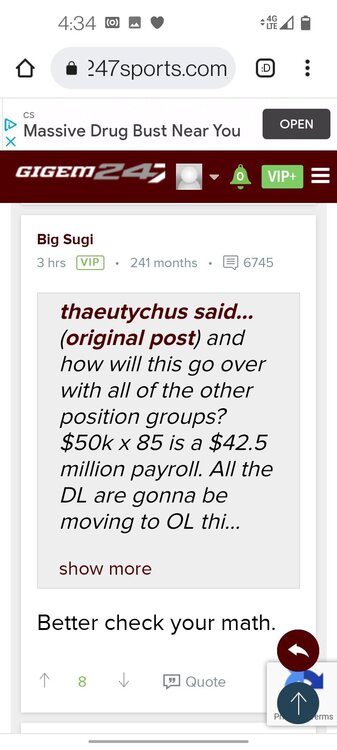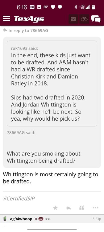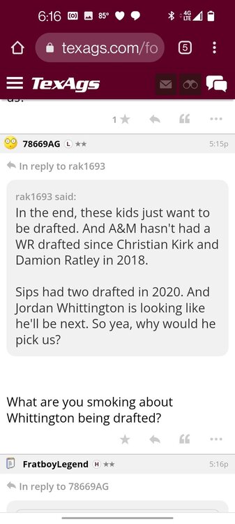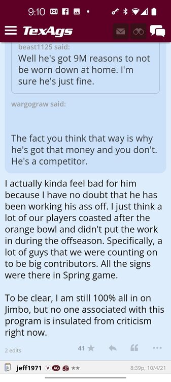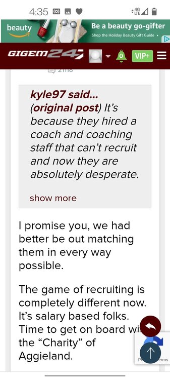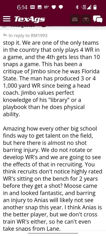 Our school is different but our fans the same? 1,124 Views | 15 Replies ... Turf96 We Aggies pride ourself on our school being different in many good ways? Our military history producing great leaders that served us to protect our freedoms. Our perfect blend of country and city boys came together to form a university that led by work ethic, innovation, and respect. It doesn't really matter what you look at over time we all pride ourselves on being a bit unique. It is what made us proud and productive. It made us successful. It made us supportive of each other. Heard of the Aggie Network? It's what we are and should be in all aspects of our Aggie support. All of that gets thrown out the window each fall. Once the football team hits a speed bump we become the biggest bunch of babies. We cry about the coach. We cry about the players. We cry about the kickoff time, refs, play calls, even the price of chicken wraps. School sports were meant to bring joy and support not tear a bunch of 18-24 year old kids down because "we" didn't win it all. In the fall when our boys take the field we root for and second guess the coach or teams just like any school. I have never heard so much pouting after Miss state game. We were uneducated as a fan base and entitled as alumni. Reminded me of LSU fans. So I ask you this; why do we place the standard of our school of its just different here, yet we have a fan base that is just like the other schools? We have an amazing coach, tier one facilities, and incredible athletes. Yet we tear it all down at first thought of we won't win it all. I won't get what I want this year. You criticize the athletes for losing their fight when things go wrong yet the fan can turn on a dime? Why don't we try this? Pay for your overpriced tickets, pay for your overpriced parking spot, pay your overpriced beer and root for the Aggies win or lose. Sure I want to see us win. What's more important to me is to see them fight with all they have and a coach that is teaching and passionate about the game. I see effort and coaching passion at every game. You will tear this post up I know as I heard first hand how little our fan base knows about football just last Saturday. I've read what a bunch of idiots we have on this site for 2 weeks now. If you are this miserable at the games don't show up consider it a donation as you didn't pay for all of it looking at many of your tax returns even if no client ever sat in your seats and it was always your family. Enough of the crying about the team. Enough of crying about how long it has been for you. If the university is better because it is different, then why not make the team better by being supportive even when a few speed bumps have been hit? This board and games are getting too much like that other school in Austin. Entitled brats. Grow up and support this team. Get behind them. Help the team go where we all want to go. I highly doubt Rudder and our other fine leaders from our past would set in stands or get on a message board and dog our team. This week as fans let's pride ourself on being different. It's what makes us better. TLDNR: why do we pride ourselves on our school being different yet we all cry about football like every other team in country? Our Aggie fans are very important to field a team yet we do not reflect the leadership and support of our past greatness as a university. Want to be great root for our team coaches and players don't tear them down. Aggie fans are their own undoing for 40 plus years that I know of. Most likely all the way back to the late 30's. If we want to win get Red A$$ and support not chap A$$ed and cry. Also grammar nazis have a ball I was science based major. Liberal arts majors grab a tissue if I hurt your feeling as I'm just different. What makes me great Beat the hell out of Bama whoop -