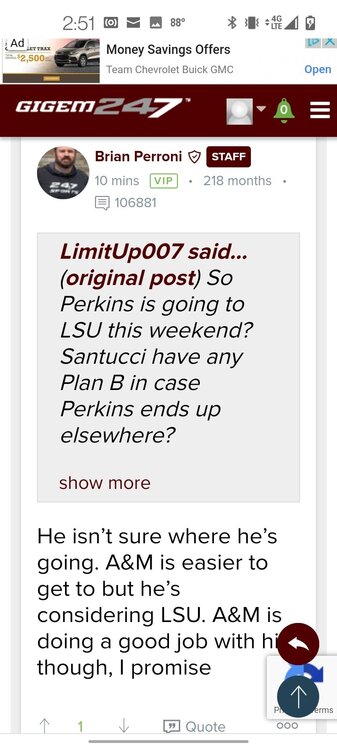Confirmed Perkins skipping aggy to go to LSU this weekend