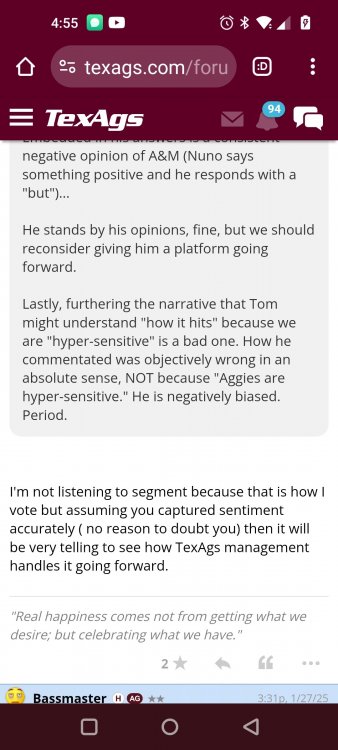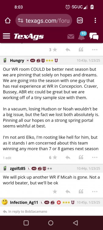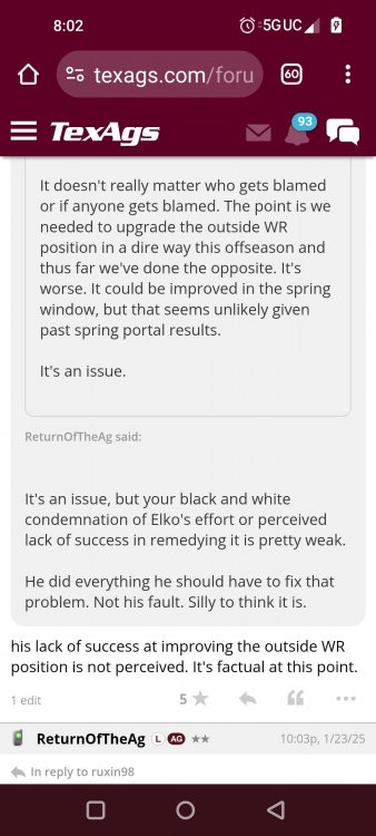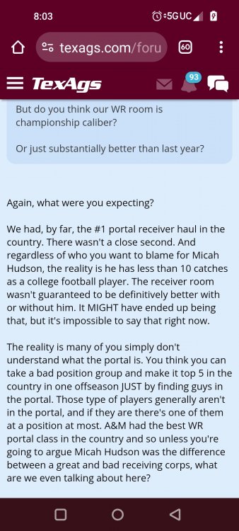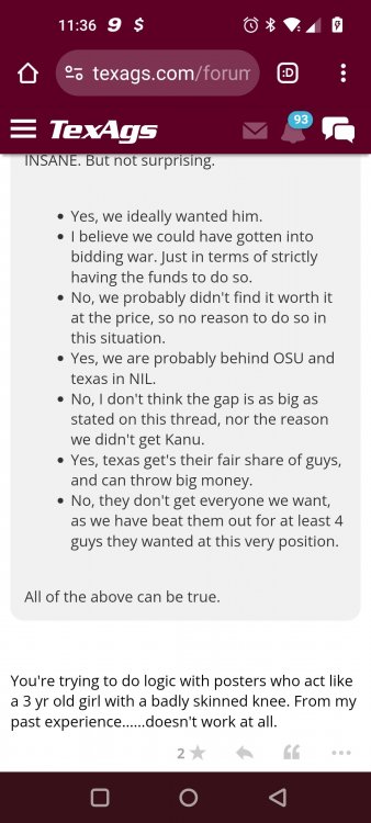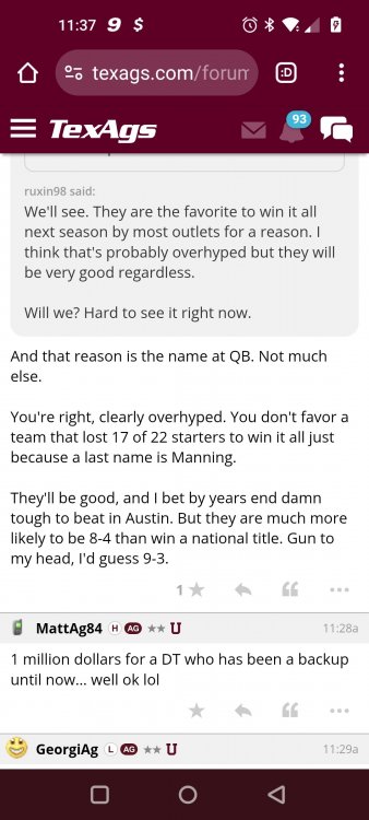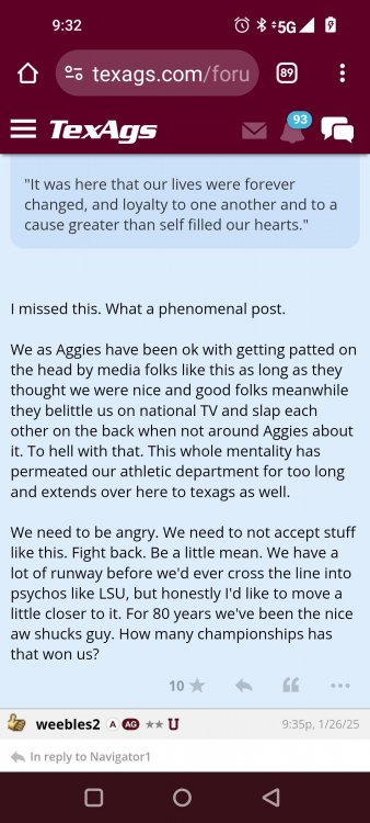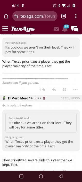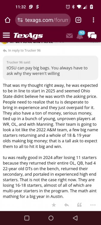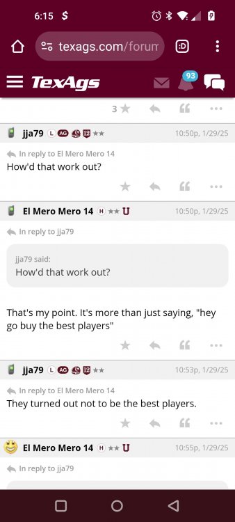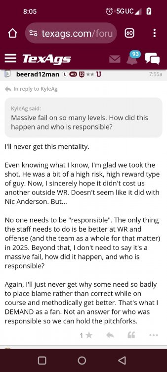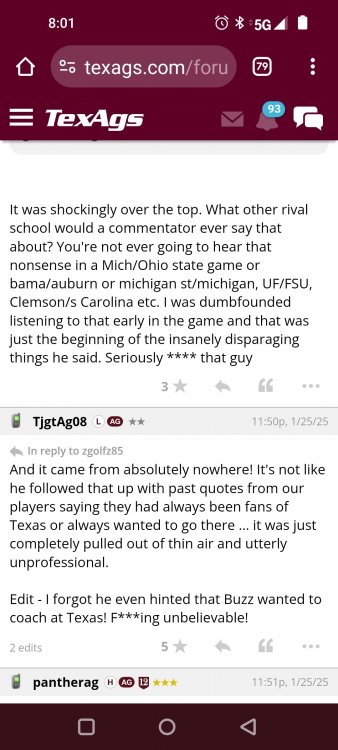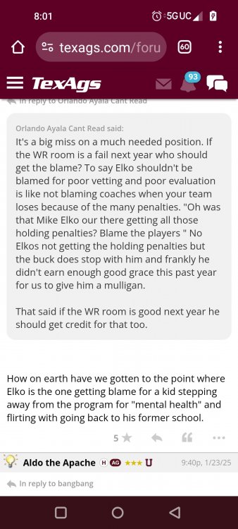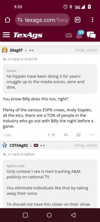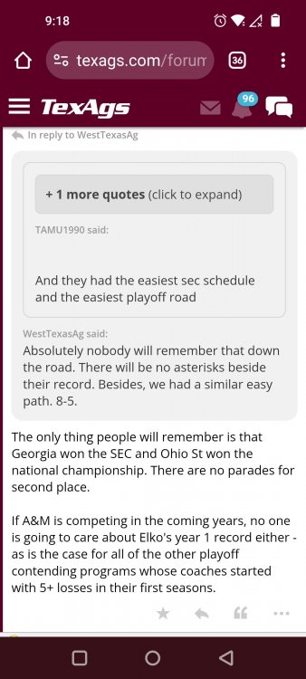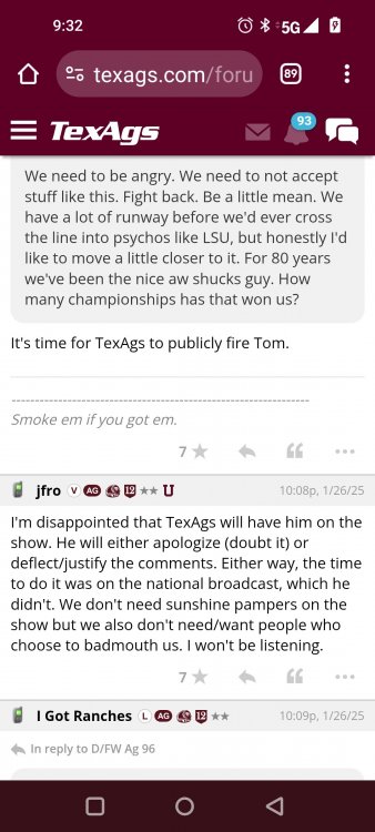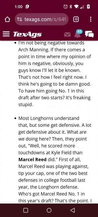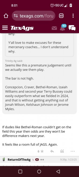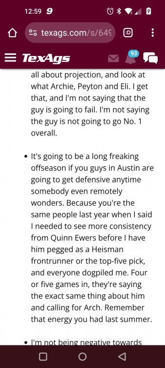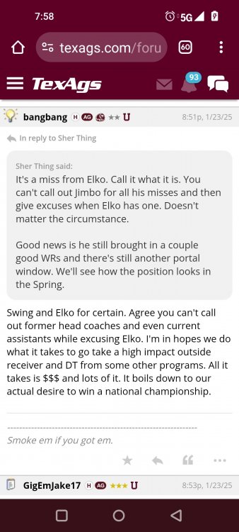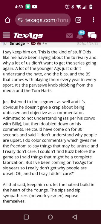 3. Bitch boy Key notes from Billy Liucci I don't think Ohio State vs. Notre Dame was the most enjoyable football. It got interesting for a little bit when Notre Dame did what I thought they were going to do and hung in there to make a game of it. I didn't think Ohio State was going to race out there. If you had told me the score was 34-23, I would have believed you. It made for some entertaining stuff in the fourth quarter, but by then, a lot of people probably tuned out because it was so slow and one-sided. It was an impressive performance from Ohio State. They were the best team in the country when it mattered most. They were the most talented team in the country all year. You could argue Georgia, Oregon and Texas for the most talented team, but I think it was Ohio State. Georgia has deficiencies on offense. Oregon, with the line of scrimmage and defense, didn’t have enough. Ohio State proved it against Texas. I saw people getting upset about Ohio State controlling the game against Texas, but they looked like the best team in every game they played. We saw it against Tennessee and that Michigan game woke them up. It's a completely different world of college football where you can lose two games, you can lose to your archrival, but you can reinvent yourself. We, as Aggie fans, need to recalibrate and understand that you can be Arizona State and be Texas and play in the national semifinals when nobody thought you could. You could be Ohio State — who went 1-2 in games where their fans cared the most — including losing to your arch-rivals in embarrassing fashion at the end of the season and still win the national title in impressive fashion. The regular season matters. Ask Ole Miss or Alabama about that if you don’t lose to Vanderbilt or Oklahoma. I do like the new playoff format because I think the best team in college football just won the national title. I don’t think they would have made the playoffs in the four-team format, so I like the fact that they won it. I like the fact that Arizona State could have beaten Texas and been the Cinderella story. I like the fact that James Franklin had a couple of chances to recreate his narrative. What I don't like is the way they do the seeding, and I think they need to look into changing that so schools like Arizona State and Boise State are not getting byes I'd rather just see them go to a 16-seed playoff. 12 is an awkward number anyway, I think a bye might be a disadvantage with the team playing the week before. The conference champions are not created equal. If we are going to pick the teams to make the playoffs, then we are perfectly capable of seeding them properly. Might as well make it 16, I think it will make it more fair and balanced. Ross Bjork can easily be talking about Michigan. He can easily be talking about Texas or Oregon, for that matter. Look, at Ohio State, he doesn't have room to talk about anyone spending money. If you look at the list of schools spending that much, the list includes Burnt Orange, the Buckeyes and it includes the Ducks. Michigan did it with the quarterback they got from LSU. I think they are about to go in. Nobody in Austin, Columbus or Eugene can stand on a soapbox about NIL. But he's right about one thing: Arizona State could have beaten Texas in the playoffs because they were just a great team. Ohio State did what they did because they had the talent, and when they took the loss to Michigan, they regrouped and said, "This wasn't good enough, and we are going to prove it.” Notre Dame's NIL is not paying what other teams are paying. It's not just that. You better have culture, a coach who understands how to piece together a roster and plug holes in both big and small situations. There's an art to it, and Ohio State had the best roster this year in college football. They recovered from an early season loss, didn't win their conference and recovered from a bitter late-season loss that would have derailed teams, but then they got into the playoffs and throttled everyone. They stood up on the one against Texas and said, "This is our season.” I like to see the best team win, even though I wanted Notre Dame to be the defending national champions when A&M plays them next year. Now, Texas will get to play the national champs for the second year in a row. Notre Dame would have deserved to win if they pulled it out, but they got a lot of teams with no offense down the stretch. They got Georgia without Carson Beck. They got Penn State. Even against A&M, as bad as they were in that game. Riley Leonard can't really complete a pass downfield. I think he completed one down the field to Jaden Greathouse. In those two games, two of Notre Dame's biggest games, he goes three quarters without completing one pass down the field. It was fun to watch him efficiently run quarterback power down the field to start the game. I thought they could maybe win it because they have the intangibles, but they were far from the best team in college football. I don't think Ryan Day is going to the NFL. Spring portal movement is what I am most interested in, especially with the number of players and agents that will agree to a NIL deal and then change their minds when they hear what teammates and players at other schools are making. I think that the spring portal window will be surprising. Other than that, it's just how much things will get fixed when the schools start paying from the court case. A&M will be north of $20 million, so to see when that gets across the finish line to pay student-athletes. I don't think we are going to see any major head coach movement. I think it should be a fairly quiet offseason for actual football stuff until the portal. I think it will be more active. I think the movement could reshape how you think of some teams. There might be teams, like A&M, who you move up or down in the preseason rankings based on the portal