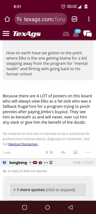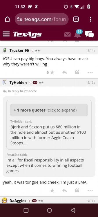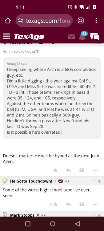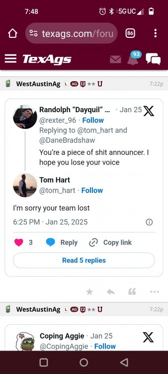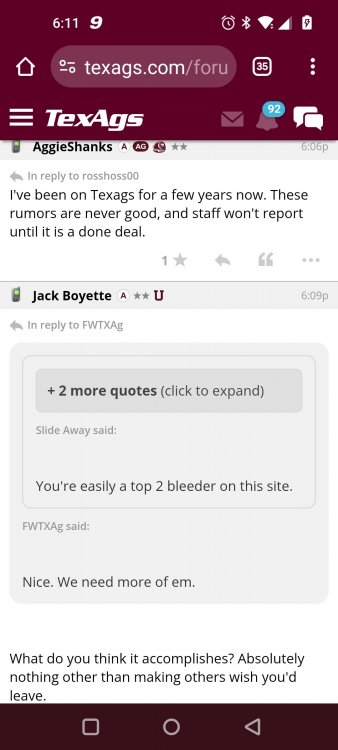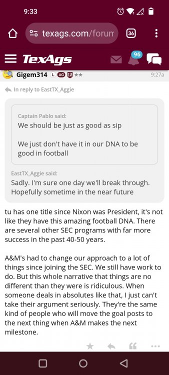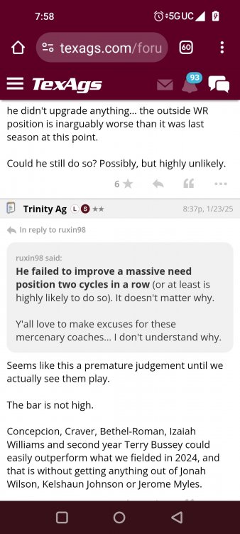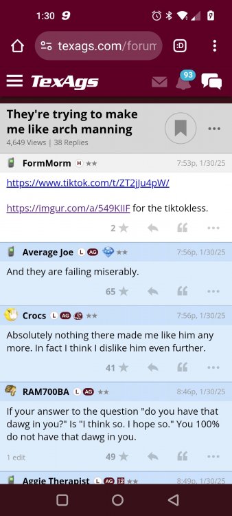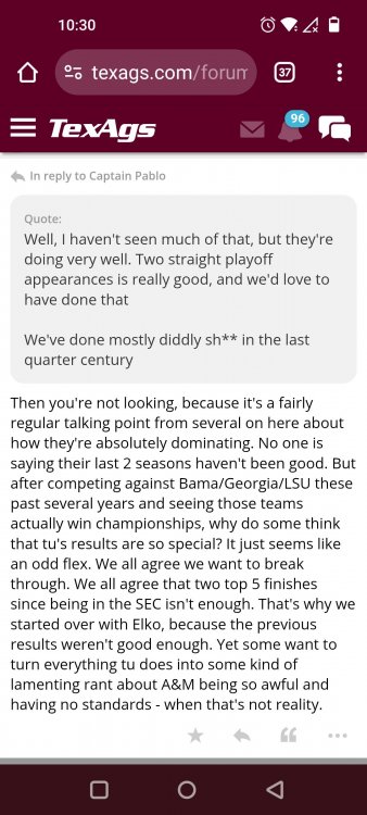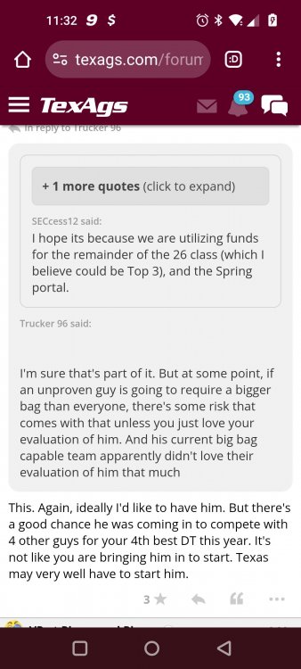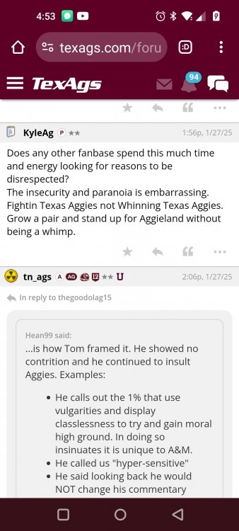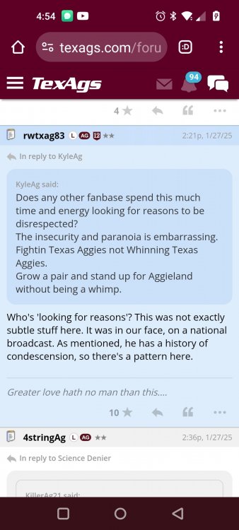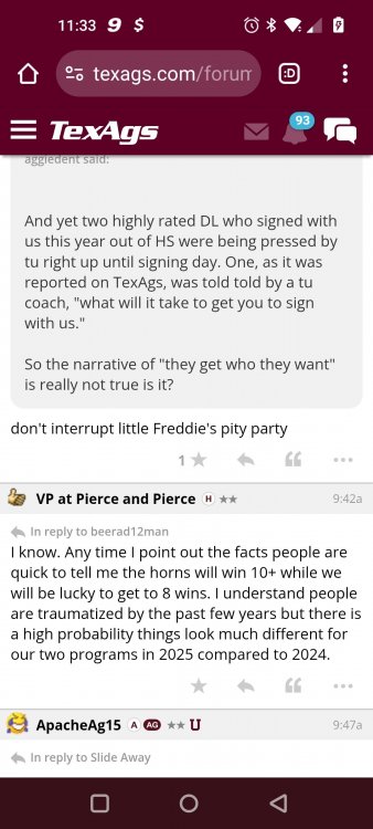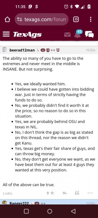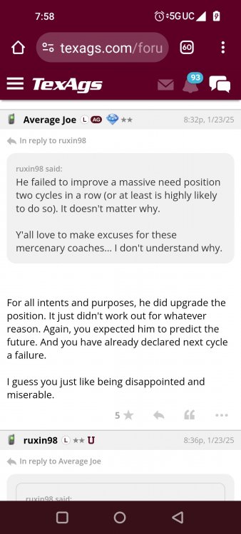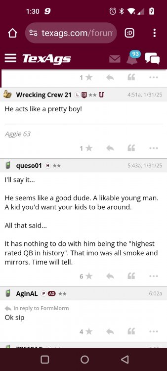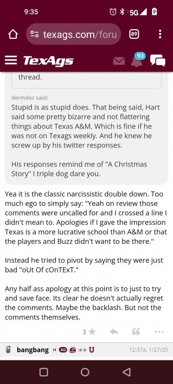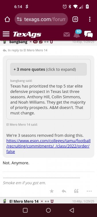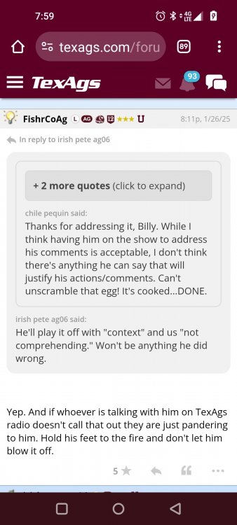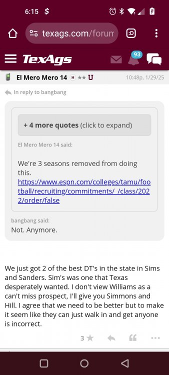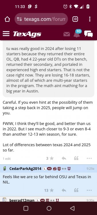 3. Bitch boy Key notes from Billy Liucci I don't think Ohio State vs. Notre Dame was the most enjoyable football. It got interesting for a little bit when Notre Dame did what I thought they were going to do and hung in there to make a game of it. I didn't think Ohio State was going to race out there. If you had told me the score was 34-23, I would have believed you. It made for some entertaining stuff in the fourth quarter, but by then, a lot of people probably tuned out because it was so slow and one-sided. It was an impressive performance from Ohio State. They were the best team in the country when it mattered most. They were the most talented team in the country all year. You could argue Georgia, Oregon and Texas for the most talented team, but I think it was Ohio State. Georgia has deficiencies on offense. Oregon, with the line of scrimmage and defense, didn’t have enough. Ohio State proved it against Texas. I saw people getting upset about Ohio State controlling the game against Texas, but they looked like the best team in every game they played. We saw it against Tennessee and that Michigan game woke them up. It's a completely different world of college football where you can lose two games, you can lose to your archrival, but you can reinvent yourself. We, as Aggie fans, need to recalibrate and understand that you can be Arizona State and be Texas and play in the national semifinals when nobody thought you could. You could be Ohio State — who went 1-2 in games where their fans cared the most — including losing to your arch-rivals in embarrassing fashion at the end of the season and still win the national title in impressive fashion. The regular season matters. Ask Ole Miss or Alabama about that if you don’t lose to Vanderbilt or Oklahoma. I do like the new playoff format because I think the best team in college football just won the national title. I don’t think they would have made the playoffs in the four-team format, so I like the fact that they won it. I like the fact that Arizona State could have beaten Texas and been the Cinderella story. I like the fact that James Franklin had a couple of chances to recreate his narrative. What I don't like is the way they do the seeding, and I think they need to look into changing that so schools like Arizona State and Boise State are not getting byes I'd rather just see them go to a 16-seed playoff. 12 is an awkward number anyway, I think a bye might be a disadvantage with the team playing the week before. The conference champions are not created equal. If we are going to pick the teams to make the playoffs, then we are perfectly capable of seeding them properly. Might as well make it 16, I think it will make it more fair and balanced. Ross Bjork can easily be talking about Michigan. He can easily be talking about Texas or Oregon, for that matter. Look, at Ohio State, he doesn't have room to talk about anyone spending money. If you look at the list of schools spending that much, the list includes Burnt Orange, the Buckeyes and it includes the Ducks. Michigan did it with the quarterback they got from LSU. I think they are about to go in. Nobody in Austin, Columbus or Eugene can stand on a soapbox about NIL. But he's right about one thing: Arizona State could have beaten Texas in the playoffs because they were just a great team. Ohio State did what they did because they had the talent, and when they took the loss to Michigan, they regrouped and said, "This wasn't good enough, and we are going to prove it.” Notre Dame's NIL is not paying what other teams are paying. It's not just that. You better have culture, a coach who understands how to piece together a roster and plug holes in both big and small situations. There's an art to it, and Ohio State had the best roster this year in college football. They recovered from an early season loss, didn't win their conference and recovered from a bitter late-season loss that would have derailed teams, but then they got into the playoffs and throttled everyone. They stood up on the one against Texas and said, "This is our season.” I like to see the best team win, even though I wanted Notre Dame to be the defending national champions when A&M plays them next year. Now, Texas will get to play the national champs for the second year in a row. Notre Dame would have deserved to win if they pulled it out, but they got a lot of teams with no offense down the stretch. They got Georgia without Carson Beck. They got Penn State. Even against A&M, as bad as they were in that game. Riley Leonard can't really complete a pass downfield. I think he completed one down the field to Jaden Greathouse. In those two games, two of Notre Dame's biggest games, he goes three quarters without completing one pass down the field. It was fun to watch him efficiently run quarterback power down the field to start the game. I thought they could maybe win it because they have the intangibles, but they were far from the best team in college football. I don't think Ryan Day is going to the NFL. Spring portal movement is what I am most interested in, especially with the number of players and agents that will agree to a NIL deal and then change their minds when they hear what teammates and players at other schools are making. I think that the spring portal window will be surprising. Other than that, it's just how much things will get fixed when the schools start paying from the court case. A&M will be north of $20 million, so to see when that gets across the finish line to pay student-athletes. I don't think we are going to see any major head coach movement. I think it should be a fairly quiet offseason for actual football stuff until the portal. I think it will be more active. I think the movement could reshape how you think of some teams. There might be teams, like A&M, who you move up or down in the preseason rankings based on the portal