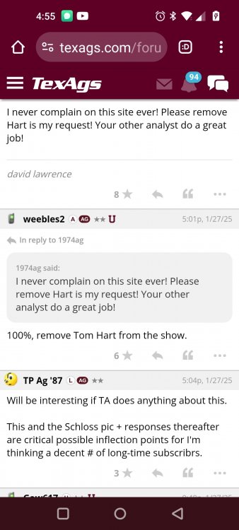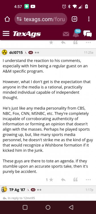 2. Liucci is creaming in his shorts Segment 1 (00:00:00 - 13:59:15) First of all, that was a lot of work. That was Trev Alberts, and you like to see the results. There it is right there. That is a lot of work that went into that, and it is not only is it an incredible deal in terms of it bursting through whenever people perceived the ceiling to be on this thing. Texas A&M now has the largest and most lucrative, fully guaranteed media rights deal in college athletics. Think about that statement and then think about how difficult that was of a spur. Trev Alberts and anyone else involved at A&M pulled that off. You did something that has yet to be done in college sports. I said the words “game changer” because it is going to change the game. It's just like building the best facilities, the best stadium, having the best NIL. People are going to see this and say, “OK. They did this.” For A&M to be the one to burst through that ceiling, it's completely going to change the game and how it's played with these multimedia companies. A&M went from Learfield to Playfly. They essentially opened it up to bidding. We look at the wins and losses and look seriously. We are going to talk even today about basketball, baseball and football. The wins have to come. When you say stuff like this, though, they are separate. You don't have to caveat that with, “Oh, we got all this, but the wins don't.” No. Two things: The A&M-Playfly deal will help you continue to try to get there on the field. And we all know how difficult a climb it has been for A&M to “get there.” What I'm talking about is getting to a national title. It's the ability to keep a coach if you want to. It's the ability to, if you lose a coach, go make that splash hire because all of that is about money, stability and leadership. This deal indicates all three. It guarantees the money. You go from $18 million a year to $34 million a year. It shows leadership and vision in this changing era. This is what people have a hard time wrapping their heads around, and they need to start realizing it: People outside the A&M bubble need to start realizing it, and they will with things like this. And people inside the bubble need to realize that “Yes.” This is a powerful, powerful, big brand. That's why their deal with Playfly is bigger than Penn State's. It's bigger than LSU's even. These are schools that are with Playfly. It's a statement deal in terms of what it says about the Texas A&M brand and what people view as what's coming for Aggie Athletics. Again, we know how difficult it is. We know. We watch it, and we live through it. The last week or two has everyone questioning: “Will we ever see it?” Yes, you will. And part of it is because of commitments like these and the power of that brand. This is really a massive day. Alberts is probably going to come on with us pretty soon, and this deal is looking two or three steps ahead in terms of where college athletics is headed. We've been talking for a long time here about where it was headed in terms of having that $20-plus million draw because it is going to be an expense added without the added revenue. OK, you're paying $20 million a year to athletes via NIL out of your athletic department. You heard Chris Del Conte this week that they want to fully fund all sports and not lose any sports. That is also the goal at A&M and everywhere else because there are problems coming up ahead when you add that type of expense without revenue. Well, guess what? A&M just went from $18 to $34 million a year in a snap of a finger. It wasn't that easy but you know, once that deal inked in, for us, it’s a snap of a finger. That's the type of deal that schools are going to have to do. Otherwise, and even then, sports are in jeopardy, as is the ability of athletic departments to survive. I'm sure there will be people in college sports who are pissed off about recently signed deals. I don't know if Texas recently agreed to one or Oklahoma or Alabama or whoever. They are looking up today and going, “Wait a second. We did maybe a $20 million deal. How the hell did Texas A&M pop up and drop a $34 million deal a month, two months, six months later when they are locked into these long-term deals?” There are going to be a lot of unhappy athletic directors and athletic departments today, but at the same time, there are also probably going to be a lot of happy ones because, as I said, A&M just set a new bar that is far and above anything that's out there. It's significant on a lot of fronts, particularly for what it means for Texas A&M, but also it's going to send a ripple affect through college athletics. That's how big a deal this is, and I know we see it. If I wasn't privy to how long and just woke up and read that today, a lot of Aggies are probably reading that going, “Oh cool. Oh, that's good.” Unfortunately, some just sit there and go, “Well, more money.” No. It's the money that you need right now. If you care about Aggie sports, which you do, whether you're a glass half full or a glass half empty... Whatever. You have to because if you care, and if you are going to the SEC Indoor Track & Field Championships today, and you like watching Aggie softball climb the national rankings. You like what Jamie Morrison is doing with the volleyball program, and you're hopeful at what Mike Elko is building at football and to construct a roster in 2025 and what it takes. All of those things. You should be really fired up and go, “Damn. That makes me feel so much more comfortable and secure in where things are going with A&M Athletics.” There is a very small group of schools in college athletics right now that feel really comfortable and really secure. I'm not even saying A&M feels that way after today, but they just took a massive step towards it. This thing is getting crazy, and we don't know where it’s going to go. We feel better than ever today that we are amongst the haves and not the have-nots 