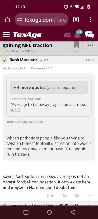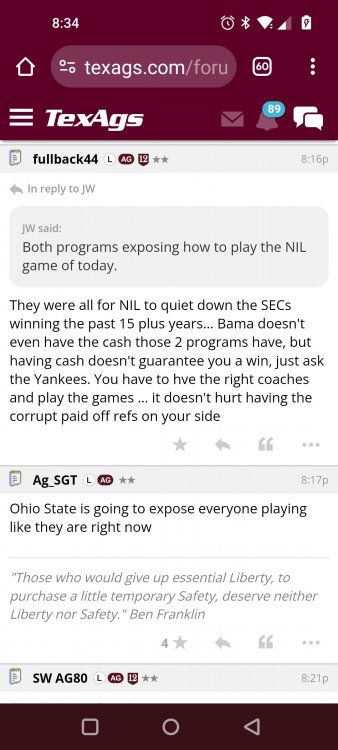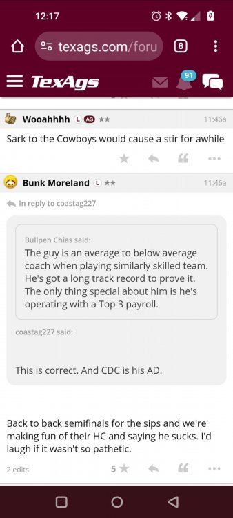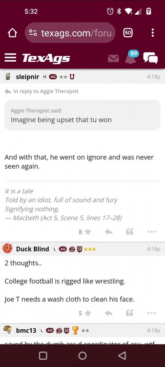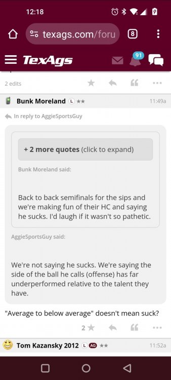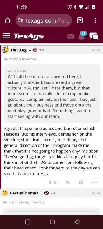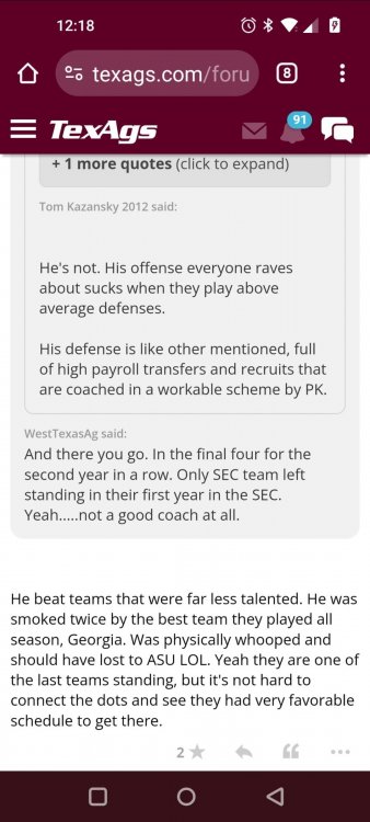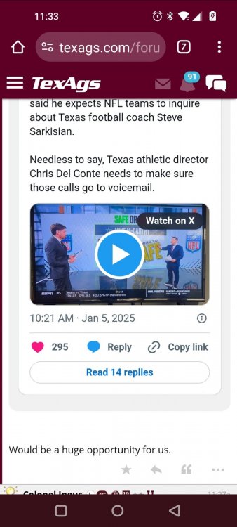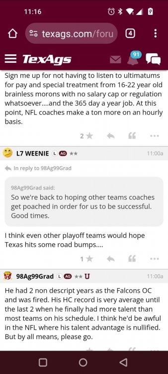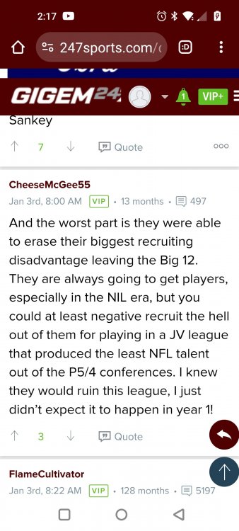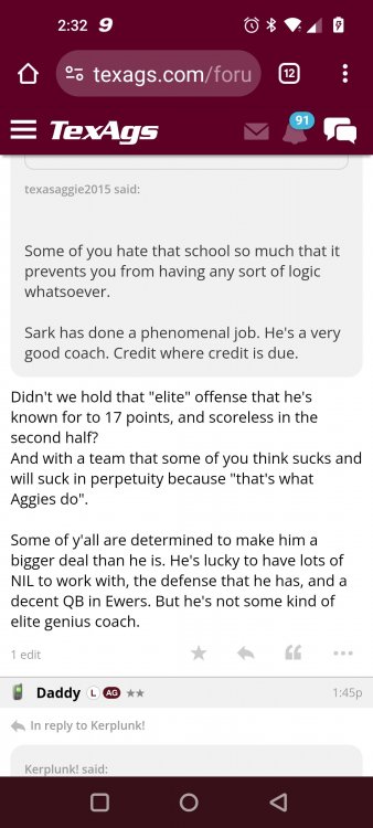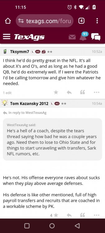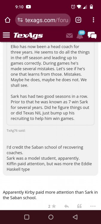 Texas A&M Recruiting 2025: The Land of Melk & No MoneyLonghornfrenzy replied to texifornia's topic in 🤫$9.95🤫 Liucci Segment 1 (00:00:00 - 09:20:19) I am not happy with the way things finished. No one should be. If the people in the building across the street weren't really disappointed by it, then it's the wrong coaches and players. I don't believe that is the case. They were working yesterday because they know it is not good enough. I don't expect anyone to be happy about it. Where I draw my personal line is if you are going to be an ass, then I will take you being an ass and raise you the biggest jerk you have ever seen. I treat people well, but I treat you how you treat me. People in real life are nice. People on a site, whether on TexAgs or any website, become an outlet for this inner jackass. I have no time for those people. It's a very small but very loud percentage. The normal sports fan is pissed about the way the season went. I am, too. It's different covering the team, but for all the people who flew out to South Carolina, Auburn or Vegas or paid top dollar to watch A&M-Texas, it's very disappointing. It's frustrating. If you want to get angry about it, I get it. A lot of people devote a lot of time, resources and energy towards helping the program win. I get all of that. Where I draw my line is when you don't have the right to expect people to not say, "I don't want to hear that." If you don't want to hear anything positive, don't listen to it. If it's not negative enough for you, I don't know what to tell you. The way to go here is to be calm, rational and honest, but see the big picture and be fair about it. For the people who get mad about someone not being angry enough, listen to the words and conversation. If that is not enough for you, then don't listen. We are being more than fair and plenty critical. There are things to be optimistic about. If you want to say you don't want to go there yet and be hopeful... Look, you got some nice wide receivers they are adding from the portal, and they are keeping key players with NIL. They are doing a great job with player retention. They signed a top-10 2025 class. They are doing nice things in the portal, and if they can finish off the defensive line, you feel really good. I wonder if there is room for another linebacker or defensive back. I would find myself another Scooby Williams-type. At times, I saw enough from the offense where you go, "I need to see it to believe it, and I am not going to buy in." I get that. To look at it logically and not expect a noticeable improvement in year one to year two, I think you are letting your anger get in the way. The personnel and the quarterback are plugged into where we are now and what he should be next year. If that is not for you, that's fine, but don't crap on anybody that frankly is trying to look ahead and see where the team should be better. There are plenty of reasons to say this thing should certainly work, and it is fair to say. If you guys don't think I am frustrated, or Nuño isn’t, or people at A&M aren’t, everybody is. It is what it is. There are a lot of college programs sitting in this position right now. A&M is in a unique position in that a lot is poured into this. It's year one of a head coach. There were ups and downs, and the downs were at the end of the season. Segment 2 (09:20:20 - 16:29:10) Everybody wants to be right. People will magically forget when they are wrong and tell you when they are right. 2021 was the early time people were getting on Jimbo Fisher. A year after that was an 8-4 season with a win over Alabama with a backup QB. Who would have known you would continue to have backup QBs with a bad offensive line? You didn't know that after 2021. You guessed right if you were out on Fisher after 2021. You probably guessed a lot of things wrong, too. I am wrong, too. But I am right a lot, and angry fans will never point that out. All of this is fine if you are not a jackass. If you run a Twitter account and are A&M-related and want to take a shot at us, I will not engage with that. I am not giving you a platform. If you are a site I don't respect, and most of them I do, but there are a couple that like to take shots at us. The door is right there. We don't do that on social media. We can have a conversation. It’s a failed effort if you try and bait me. Segment 3 (16:29:11 - 31:03:27) In Dan Campbell's first year with the Lions, they were 3-13. It doesn't happen overnight for a lot of people. Both things can be true. In its totality in year one, for any first-year coach, you can go down the list of things they did accomplish. All of you know it, and you choose to acknowledge it, or you don't. There is a reality of how you finished, and it should be. It dulls the enthusiasm. I am not just a fan, but I am a fan. I am a fan of the Astros. Some of you would love a show where we went crazy. It would get tiresome. The fans that want to crap on everything forever, it gets tiresome. Fans that want to be pissed watching A&M lose its fourth Power 4 game in a row, I get it. Everybody is mad. I get the anger, frustration and disappointment. I am not going to tell anyone that they shouldn't feel that way. The overwhelming majority appreciates our words and the show. I don't care if you don't like it. 8-5 in year one is not bad. Not good, but not bad. Better than a lot of teams historically around this league. People don't want to hear that now, but you know it's true. You were 8-5, but two of the wins were against top-10 teams. "But it was Missouri and LSU." That's not how we do it. 8-5 with four wins over teams with winning records. In the last three years combined, A&M won four games against SEC teams with winning records. This year, A&M beat Missouri, LSU, Florida and Arkansas. This is not a parade thing. The point is that there was an improvement in this program. The problem is the end of the season didn't make it feel like it. The reality is they lost two 
