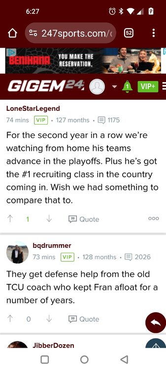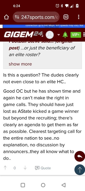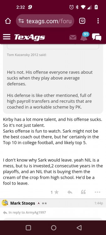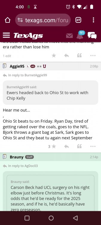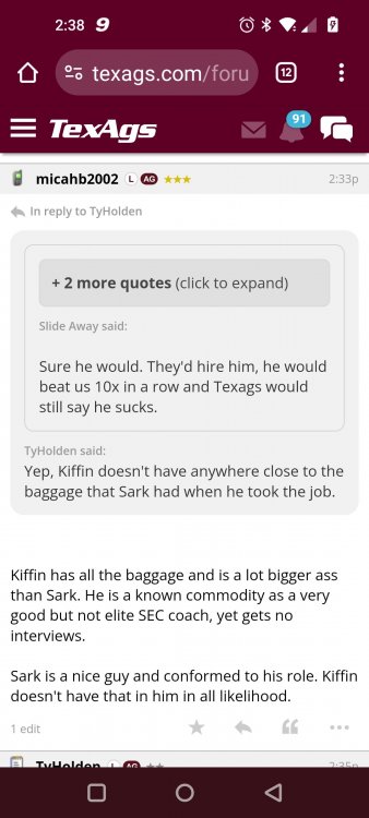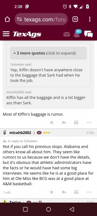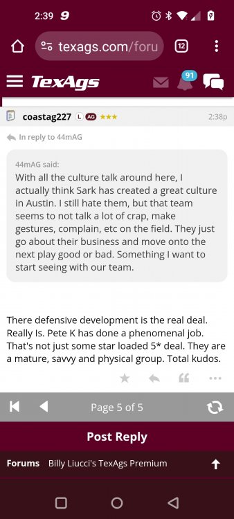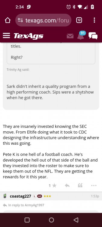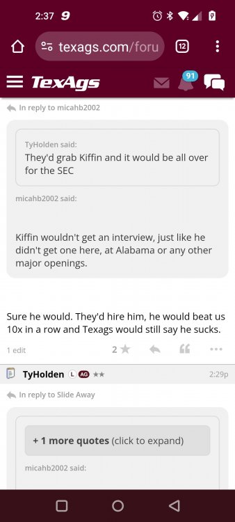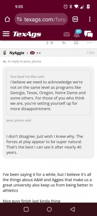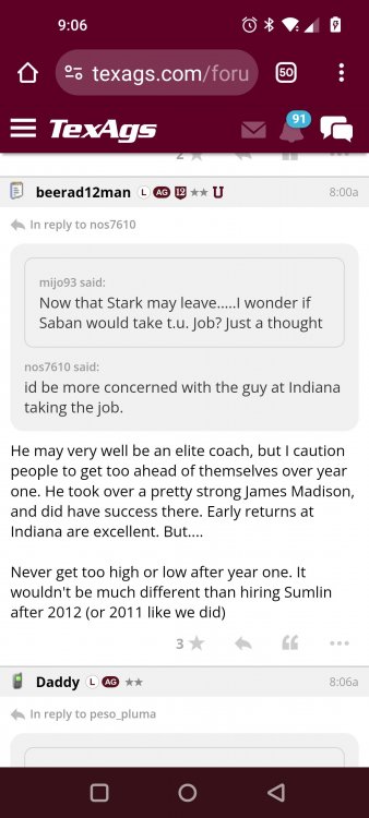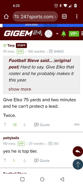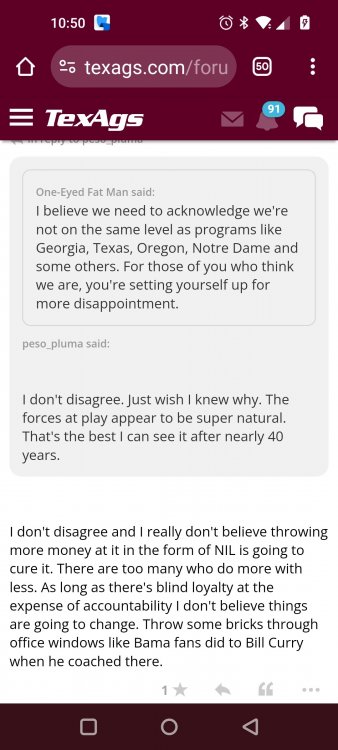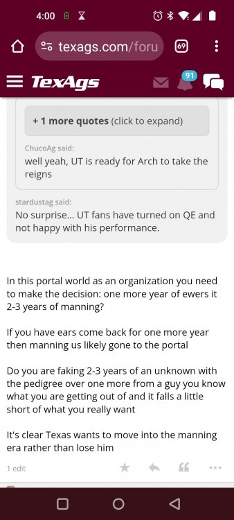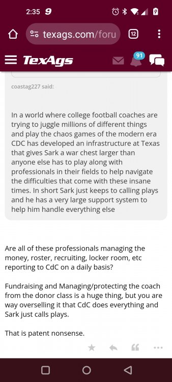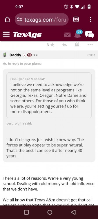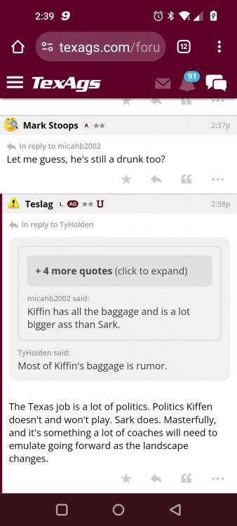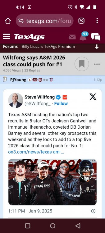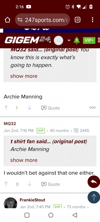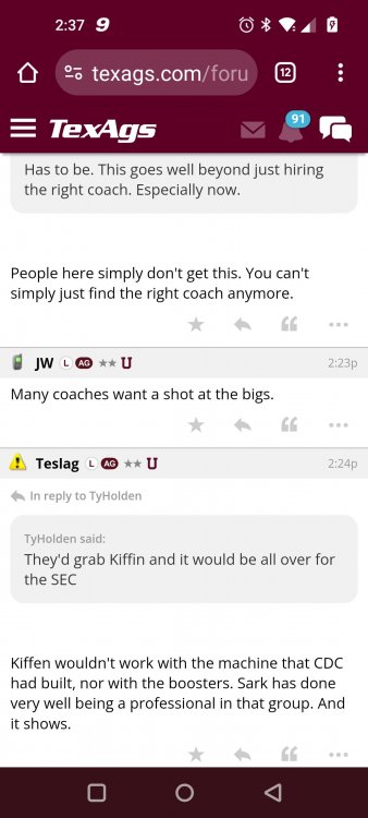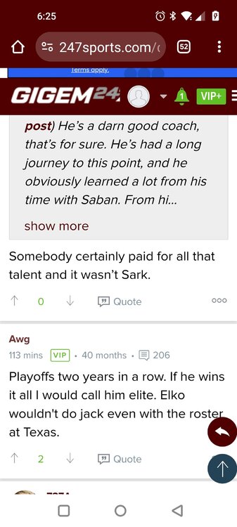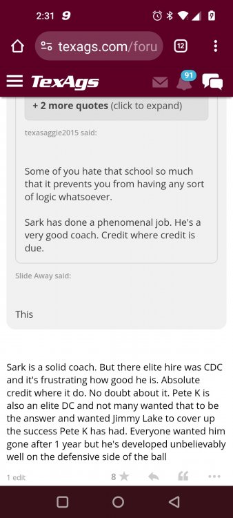 Texas A&M Recruiting 2025: The Land of Melk & No MoneyLonghornfrenzy replied to texifornia's topic in 🤫$9.95🤫 Liucci 12/29/24 Okay if this wasn't the travel day from hell. As if USC's last second, come-from-way-behind win wasn't enough, how about two hours on the runway in Vegas plus another hour waiting for a gate at IAH followed by a 45-minute wait at baggage claim then a nice drive to College Station in the fog. On second thought, maybe that fog was just me dealing with the lingering effects of the game. Either way, had some time to answer questions and will hit a lot more tomorrow in addition to some kind of video content. Enjoy. And forgive me for any typos, as this was written on the plane and with a faulty 'r' button on my keyboard! Just wanted to post it tonight as a normal thread rather than wait until the content crew could get it up tomorrow. Do you expect any changes to the coaching staff? Two things at work here. First one is that head coaches typically shy away from making changes following year one. That's especially true when the assistants essentially inherit their room. Times and circumstances are different now, however. We're in the portal era and the Aggies just dropped their last four games against Power 5 opposition and, for different reasons, each loss revealed real issues. Elko is not the type (at all) to sit back and accept what we saw down the stretch this fall so he's not likely to be bound by the "well this was year one and we're a new staff looking to turn things over" mantra others I've covered have been. Haven't heard of any specifics but I have been doing this a long time. I'd expect at least a slight degree of attrition whether it would a change from within or someone finding an opportunity elsewhere thus freeing up a spot. We'll know soon enough but I'm confident Elko will take a very honest look at how his staff performed in 2024 and have an uncomfortable conversation if he has to. And that's true for at any point during his tenure here. What are your general thoughts and feelings right now both short and long term? Long term I believe the guy coaching at Texas A&M is going to figure it out. I actually would like to sit down with him at TA more often this off-season so folks could learn a little more about the way he's running and building the program, day to day and big picture. It's part of why I'm confident he's the dude to get this thing going how it needs (and deserves) to be. But he has to get there, and doing so requires winning in the short-term. The Ags were doing that at a very impressive clip following Notre Dame but fell hard in November. So we're all adults here and understand that a lot of potential 'in the moment' momentum was lost by not winning a game or two more (winnable ones, at that) and shocking the country by appearing in Atlanta. I even think last night was a chance to score tangible momentum entering the off-season and the Ags didn't do that (in pretty embarrassing and discouraging fashion, no less). My short-term concern is this coming season because time waits for no coach or program in the SEC and the Ags are in need of a strong close to the portal season because there are real holes to fill (beyond just one more playmaking receiver and shoring up the d-line in a big way) and the schedule is much more unforgiving in 2025. Elko and Co. need to attack this second half of the early portal window in a big way. Coaching changes? Thanks I'll hang up and listen. See above. Feel like I'll be saying that a lot here. What are the odds Bateman gets fired? No idea on odds of such things but the head coach and DC clearly have a lot to figure out when you look at how the Ags played on that side of the ball for halves and/or full games all too often this season. And, injuries aside, the head-scratcher for me is the fact that Elko openly stated this off-season on more than one occasion how excited he was about this year's defense even compared to past A&M units he's coached. Definitely something the head man has to be very disappointed in when he looks back on this past season. Outlook for next season? See above. Concerned but also far from deflated or panicking. There really should be a noticeable year one to year two jump for a program under a new regime and also for a ton of individuals who will play key roles next fall. However, help also needs to arrive and if I'm Elko right now, I'm taking a hard look at every position. I know the Ags were without a lot of key figures on defense last night (three starting DL, two corners including your best and your best linebacker) but you also had guys you're planning to depend on next year on both sides playing who struggled mightily to make winning plays. Why do you think the team collapsed after the LSU win? Tough one to answer. I think first and foremost, they took a couple of big hits at South Carolina, not the least of which was their confidence and I believe they weren't the same team physically after that night. Losing Le'Veon Moss proved to a real killer and the Ags had also lost Bisontis a week prior. The interior ground game took such a big hit there and that was so important in terms of sustaining drives and even down near the goal line but also helping Marcel Reed along in his development as a passer. I'm just talking about keeping him out of bad situations. Scooby Williams missing time and being hut was also a big deal because he's the most active dude in that font seven and was beginning to look like a difference-maker. However, I also think it's fair to say that the book was out on the Ags by the time November rolled around. Make Reed and the A&M passing game beat you down the field, sit on early-down runs and run right at the Aggie defense. South Carolina, Auburn and Texas did so with alarming degrees of success. The fact that Elko volunteered last night what was pretty obvious down the stretch was telling, as well. The inability to have the confidence to run very much zone is 