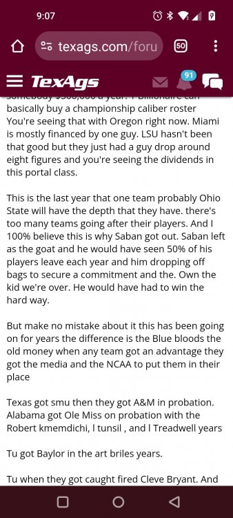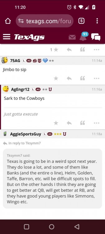 Texas A&M Recruiting 2026: The World's Drunkest ElkLonghornfrenzy replied to texifornia's topic in 🤫$9.95🤫 Liucci Segment 1 (00:00:00 - 10:30:12) Here is the thing about Marcel Reed. I thought he did a lot of things in the bowl game that I hadn't seen him do much of. The game-ending drive, the check-downs, being decisive with the ball, in rhythm and on time. He was really good in that game. We could pick apart a lot. I think when he hits that maturation point when he is a seasoned, veteran quarterback, his style of play will be one we can nitpick. As he gets better and better, he will take chances. In two of A&M's last three games, he led the Aggies downfield in the closing minutes of a football game. He put them in the end zone twice late against Auburn and USC. Reed was certainly one of the reasons A&M should have won both of those games. The drops impacted the game's results. I think he was a real strength in those games. Texas got after him. That is one of the couple best defenses in the country. That was not a good day for him or anyone in Maroon & White. Were you encouraged by Reed against Arkansas? That was a tougher game for him. I would say it was a positive. He led a game-winning drive in Jerry World in his second start. It was mostly Le'Veon Moss. Reed was scrambling. He didn’t play vs. Mississippi State or Missouri. LSU? That was obviously a positive. South Carolina, I would say a negative for him. Auburn? Positive. Texas? Negative. USC? Positive. I have two negatives as a freshman. Stephen McGee is like our coach in the studio. I love when he does that. You have Ryan Swope as the eyes of "I played with Johnny Manziel." Swope is just like, "Let's play ball and see what happens." McGee will gravitate toward Conner Weigmans of the world, and Swope will gravitate toward players like Reed. Segment 2 (10:30:13 - 28:12:19) Our fans and every fan will get mad if a player they want to stay or think should stay goes into the transfer portal. They will post a lot of things that will not help said player to come back. That happens everywhere. Texas A&M wants to keep Noah Thomas. If I was a betting man, I would bet that A&M doesn't keep him. If you made me bet, but I am not confident enough that I would make that bet. There's a chance he will come back. They are still in communication. Georgia, in particular, was a big part in convincing him to go into the portal. James Coley is over there. This is ironic because the first couple of rough years here for Thomas were with Coley on staff. Who is Georgia's quarterback next year? Probably Gunner Stockton. You know a lot more about Reed. Georgia does need receivers. I know Texas is sniffing around. I'm sure Ole Miss will sniff around. Tennessee is involved. Everyone will go after a guy who scored eight touchdowns this year. Thomas’ top-end highlights are up there with damn near anyone. With his top-10 catches at A&M, you are going, "Oh wow." When you enter the portal, you make a choice for one year. You have agents, and they convince you that it may be a better move to get eyes on you for the next level. That's what Mike Elko and Collin Klein are fighting against. Where does Thomas fit in the Texas receiving corps? How much could Georgia and Stockton get him the football? You know A&M's playbook and Reed. Kevin Concepcion had been beaten down with the "Marcel Reed can't throw" narrative. He came to practice and said, "Oh, yeah. I can come here and play with him." He actually watched and saw him. Do I think Thomas is going in to make more money? Nope. I genuinely do not believe that. Because of leverage and because he's a veteran, big, tall receiver, he will get taken care of. He has an agent and people in his ear saying, "Go get more balls." Again, that is not a sure thing. By the way, Georgia has issues outside of Stetson Bennett, Brock Bowers and Ladd McConkey. Outside of that window, they have had a lot of issues. You wonder how Thomas feels about three portal receivers. The logic sometimes goes out the window when you have every coach in the country, except your own, telling you one thing. You and I can sit here without having the emotion and decision that every college football player has. You can be as critical of Reed or praise him as much as you want. The one thing you have to understand is that the kid could have gone into the portal and commanded. Reed stayed. He made to decision to not go into those waters and get overwhelmed. I don't think Thomas went in just to test the open waters. I think there was a specific team or team that convinced that to happen behind the scenes. A&M, I promise you, has done that with guys. There were guys we thought would go in the portal that A&M would get. Why did we think that? I think it will take a lot to pull Thomas back. Here is the deal: If I were Thomas, I look at the roster and receivers and go, "I am the best one today. I was the best one this fall and the biggest threat." I loved Jabre Barber. Thomas was the best one this year. When you throw in Concepcion, Mario Craver and Micah Hudson... Look, you lost Moose Muhammad III, Jahdae Walker and Cyrus Allen. You need guys. If you are Thomas and whatever attention he got this year, in theory, at WR1, it should be gone. That is the point of bringing in the portal guys. If you look at Thomas’ freshman to sophomore to junior seasons, he has improved. It doesn't make a whole lot of sense to me. People are preying on the emotion of "This is my audition before the NFL." I do think he has an NFL future in some capacity. People that don't think it's that big of a loss are wrong. People that think it's the end of the world are wrong. You can live in the middle. He could help A&M win a lot of games next year and start. If A&M is unable to get Thomas back, I don't know that you "replace." If he leaves, it creates more of a clear pathway for a guy like Hudson. I would expect them to try to get some with size out there, and I would like them to do 