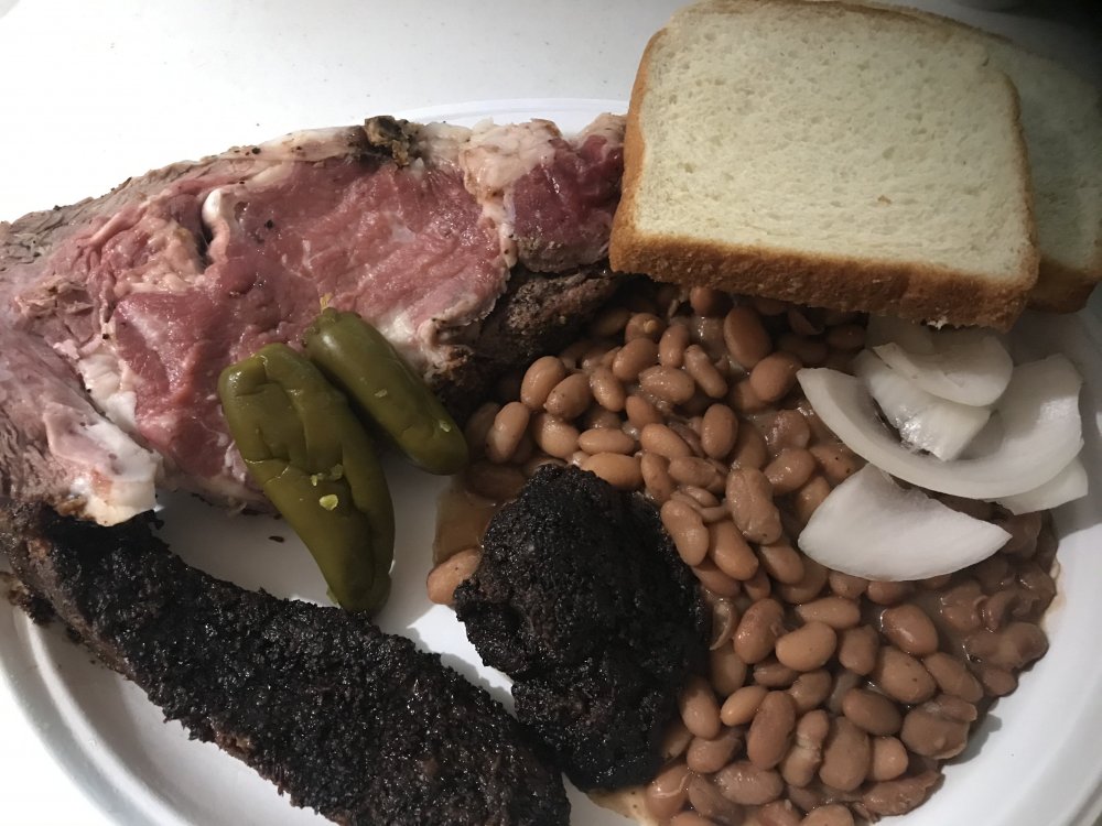23. If you’re asking about my Chinet plating... prime rib / beans were from Coopers and what my group left for me in the fridge. Our trips didn’t overlap. Brisket scraps were vac sealed leftovers I had in the freezer from a Labor Day smoke.