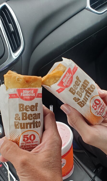 15. Road trip snack. Introducing my oldest to the awesomeness.