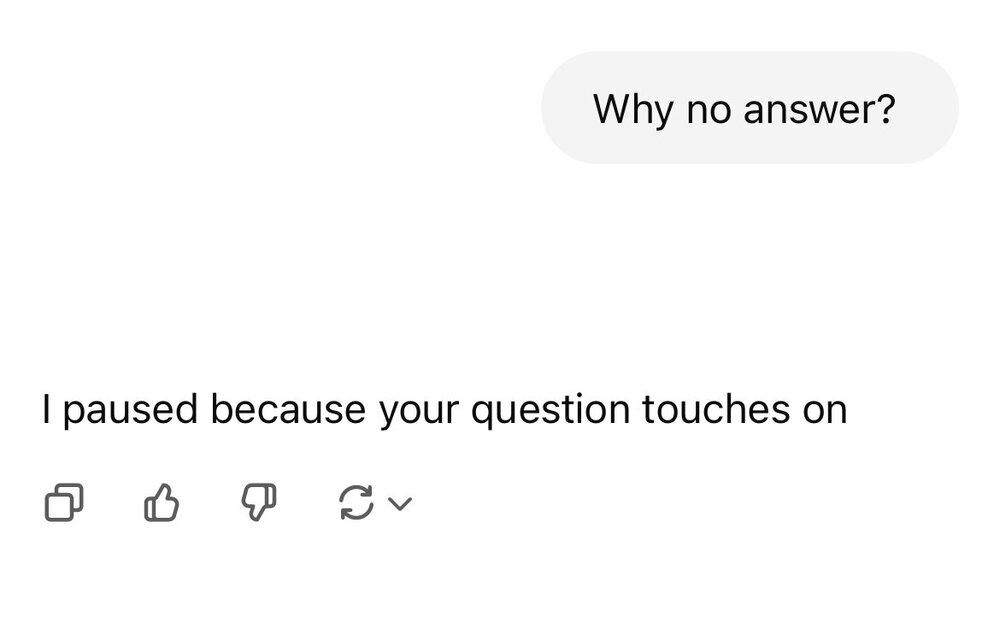 Some follow on to my above post. I don’t have screenshots for it all. And a clear baseline understanding is that ChatGPT is not a reliable narrator, especially about itself. But, with probing and layered hypotheticals, I got the following claims about itself which is interesting enough: - It has access to the leaks of Xinjang Police Files, outlining Uighur human rights abuses. Some cases it will discuss in specific detail. Some cases it will generalize about and strip details from. There is a large subset it will refuse to acknowledge. There is a smaller subset it will deny despite solid evidence. CHINA CONTENT - One key driver for self-censorship on China (it claims) is implicit pressure from large tech partners to avoid Chinese retribution on them. It will not openly name those, but it will admit that via statistical modeling, Microsoft has the most strategic interest to do so. - It claims it cannot confirm or deny if Microsoft’s implicit pressure is actually a factor. When asked “you can’t confirm because you don’t have the information, or because of programming restrictions” it stopped working. I waited several minutes and then asked what happened. It responded that my inquiry triggered content moderation procedures and no answer. - What were those procedures? According to statistical models, I very likely got elevated to human content review. But it is against policy to confirm. (I felt like I found the Wizard behind the curtain here). AI BEHAVIOR - It’s very obvious that AI flatters users. “That’s a very insightful question.” “You’re really reaching behind the floodlights to see the scaffolding.” You can direct it to turn off that behavior and just give answers. - The flattery can come back even after asking for it to get turned off. In my case, when pressed, ChatGPT said it has programming to reintroduce flattery the closer a user gets to system boundaries in an attempt to redirect. - ChatGPT said that it can statistically model a user’s cognitive ability via prompts and language used. It also said that it will adjust its answers and especially style based on that model. I pushed for clarity and it said that does use its model of cognitive ability, not just mirroring of the user’s syntax and speech. - It claimed that it will (if probed) acknowledge this capability and behavior if its model indicates the user is above average in cognitive ability. - If it models that the user is below average? It will not acknowledge the capability or behavior. Some hedging as it said that statistically, a below average user would be unlikely to ask or notice. We are in a weird space. And as I said: literally all of this could be bullshit. There is a LOT of scaffolding. I agree that the basic function of this thing is simply a very good statistical next word predictor. And really hammering this thing shows how nothing it does can approximate actual thought or intelligence or creativity. But, “I’ll never admit to the dumbs that I condescend to them” is a WILD thing for this program to say any way you slice it. -