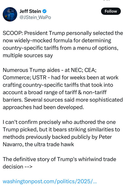 Mnuchin chimes in and he says: Don’t ask questions. https://thehill.com/homenews/administration/5230772-how-the-white-house-calculated-reciprocal-tariffs/