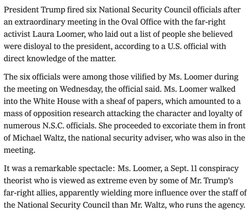 It can’t be said enough: if you take a secondment or political job on this NSC you absolutely deserve to get fired by Laura Loomer in the most embarrassing way possible. -