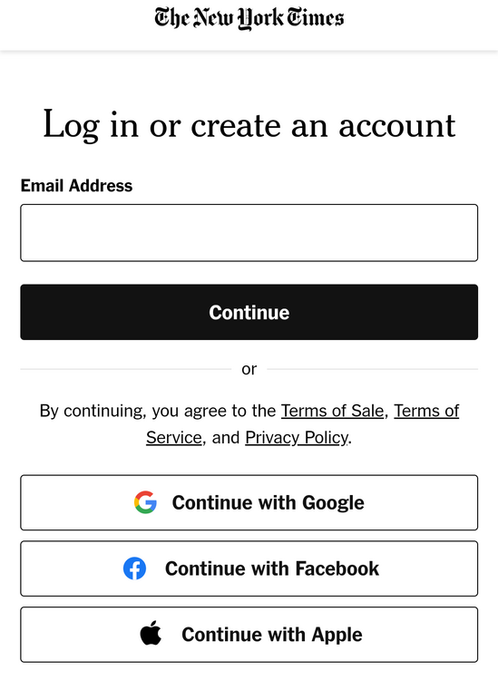 13. You don't need to create an NY Times account to do stat tracking. A Google/FB/Apple account also works: