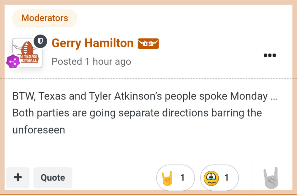 A&M's Draft performance this year should be the canary in the coal mine for that program under Elko. Although their DL guys got drafted, the story with all of them was "they didn't have the performance that matched their expectations. They are getting drafted on potential." Defense is Elko's bread and butter, but he couldn't get that defense and the elite players to play at an elite level. It was just "meh." And no one can try the excuse of those weren't his players. Yeah they were. He recruited those guys, and he went to the portal to get the defense he wanted. The Year 1 Elko Experience is everything someone should expect out of Elko when it comes to development going forward. It's not going to be great by any means.