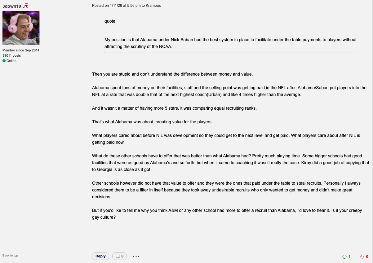6. It was always going to be tough following Nick Saban, but NIL+Portal is like 3 punches right to the dick of the alabama program He really should have found himself a better destination, got to be a sky high likelihood of him being ejected out of bama next year for mostly things outside his control