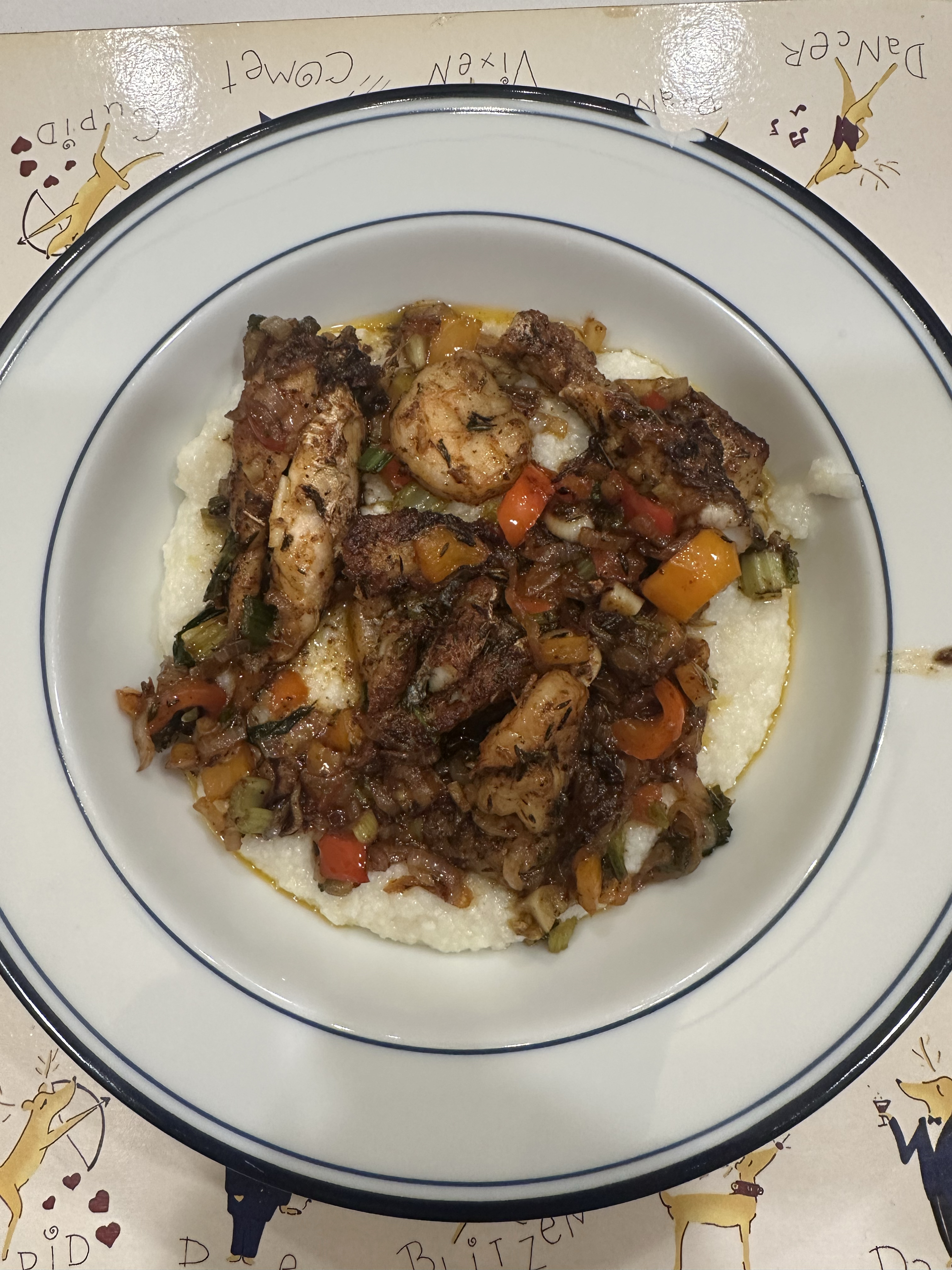 Kiddos are home. They want all kinds of stuff they can’t get overseas. Shrimp and catfish and grits.