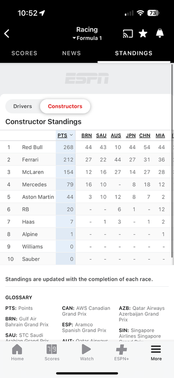 Prolly been said already but Checo had an aerodynamic issue that kept him from being fast, RB acknowledged this. He should’ve finished with a podium even with the grid penalty. I was told there would be no math but if he finishes in the top 3 this past week, he would’ve been leading the championship right?