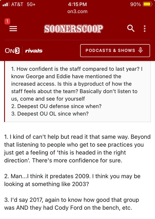 I have to confess that I read SoonerScoop. They believe that the 2023 RRS is the baseline for the rivalry, much more so than 2022 or 2024. That was a game where they played nobody before Texas, worked on tempo and QB draws in practice without ever putting them into a game before Dallas, had the Texas signals stolen, profited from very untimely injuries to Majors and Sanders, and still would have lost had the game been 59 or 61 minutes. This year, they have to play two important games before Dallas. I expect it to be a game, and sure, Texas could lose, but their hill to climb is a lot taller and steeper. -